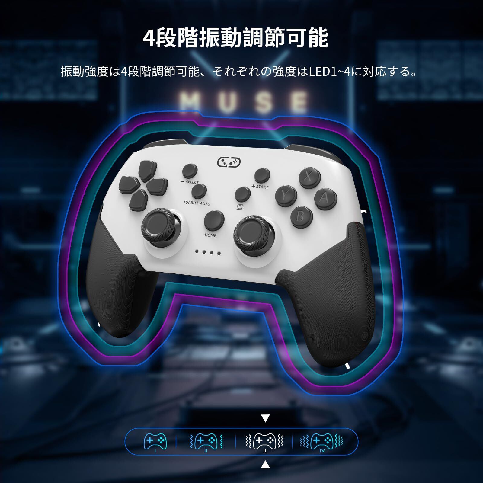 【2025年アップグレード版&高い交換性】2025年アップグレード!本製品はまれにあるシンメトリーボタン配置のSwitch用無線コントローラーです。洗練なるモノクロ配色とクールなオールブラックの2色、マクロ編集機能、2つの背面ボタン、3段階Turbo連射速度、4段階HD振動、Bluetooth5.0接続、6軸ジャイロセンサー、スクリーンショット、自動連射機能(連射ホールド)など、様々な機能が今までと異なるゲーム体験が楽しめます。高い交換性を持つ、Android/iOS13.0+/PC Windows7/8/10+にも接続可能、MFI認証のスマートフォンゲームに対応可能。本型番はSwitch本体だけではなく、スマホやタブレットにも無線接続可能です。※Switch2へのスリープ解除対応できません。一部のSwitch2ゲームのプレイは対応できません。