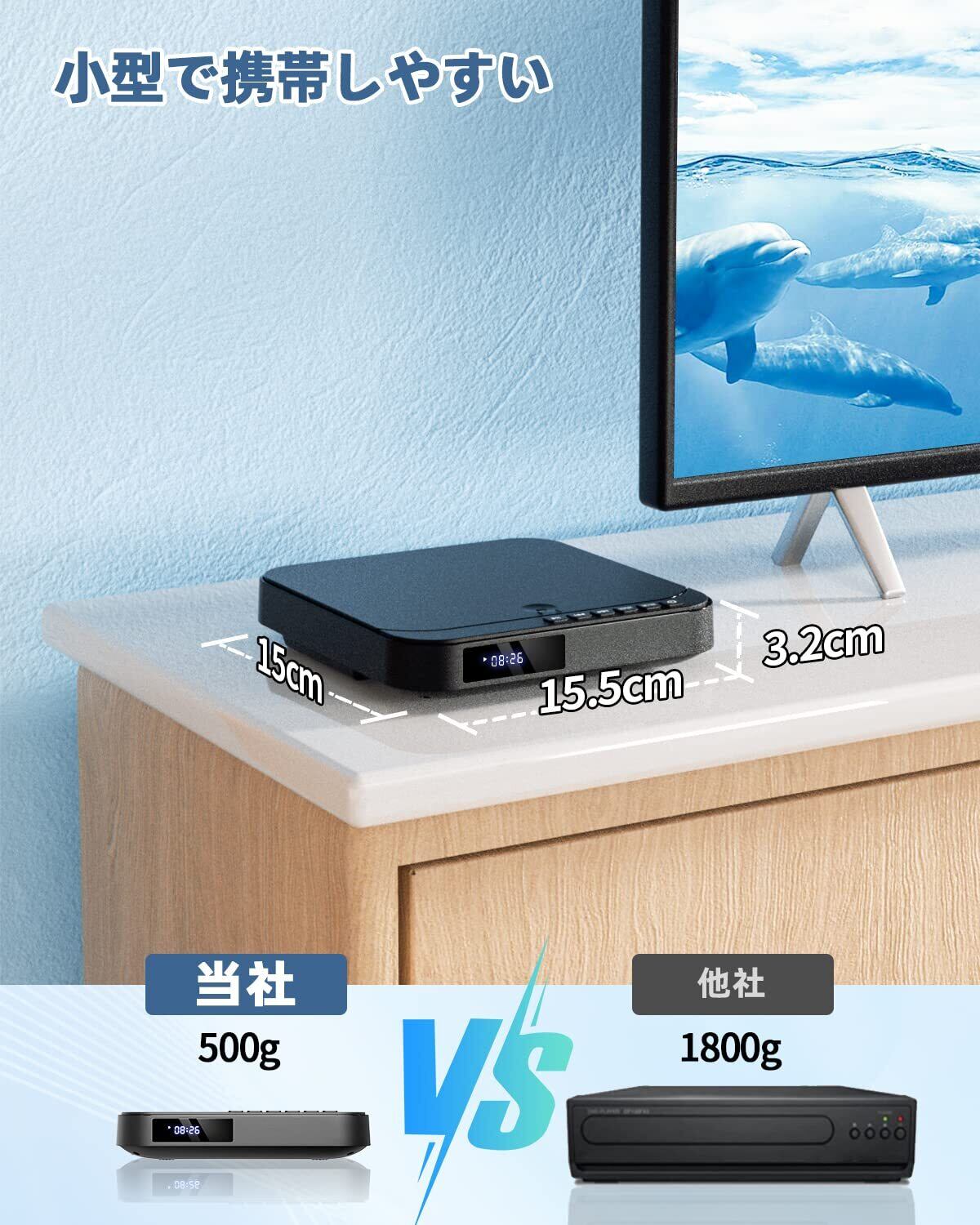 ミニDVDプレーヤー 1080PサポートFELEMAN DVD/CD再生専用モデル リージョンフリー CPRM対応、録画した番組や地上デジタル放送を再生する、USB/TFカード再生、テレビ/プロジェクター接続可能、Blue-ray非対応、HDMI/AV/イヤホン端子搭載、日本語説明書付き