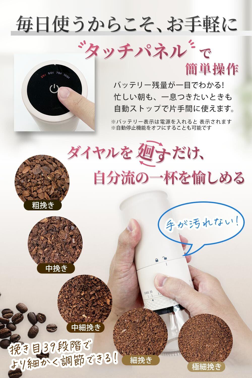 【新着商品】【anan掲載xバリスタ監修モデル】 電動コーヒーミル コードレス コーヒーミル コニカル式 USB 充電式 水洗い可能 コーヒーグラインダー Leggero『タッチパネル簡単操作/挽き目39段階調整』 (ブラック) | ニコニコSHOP