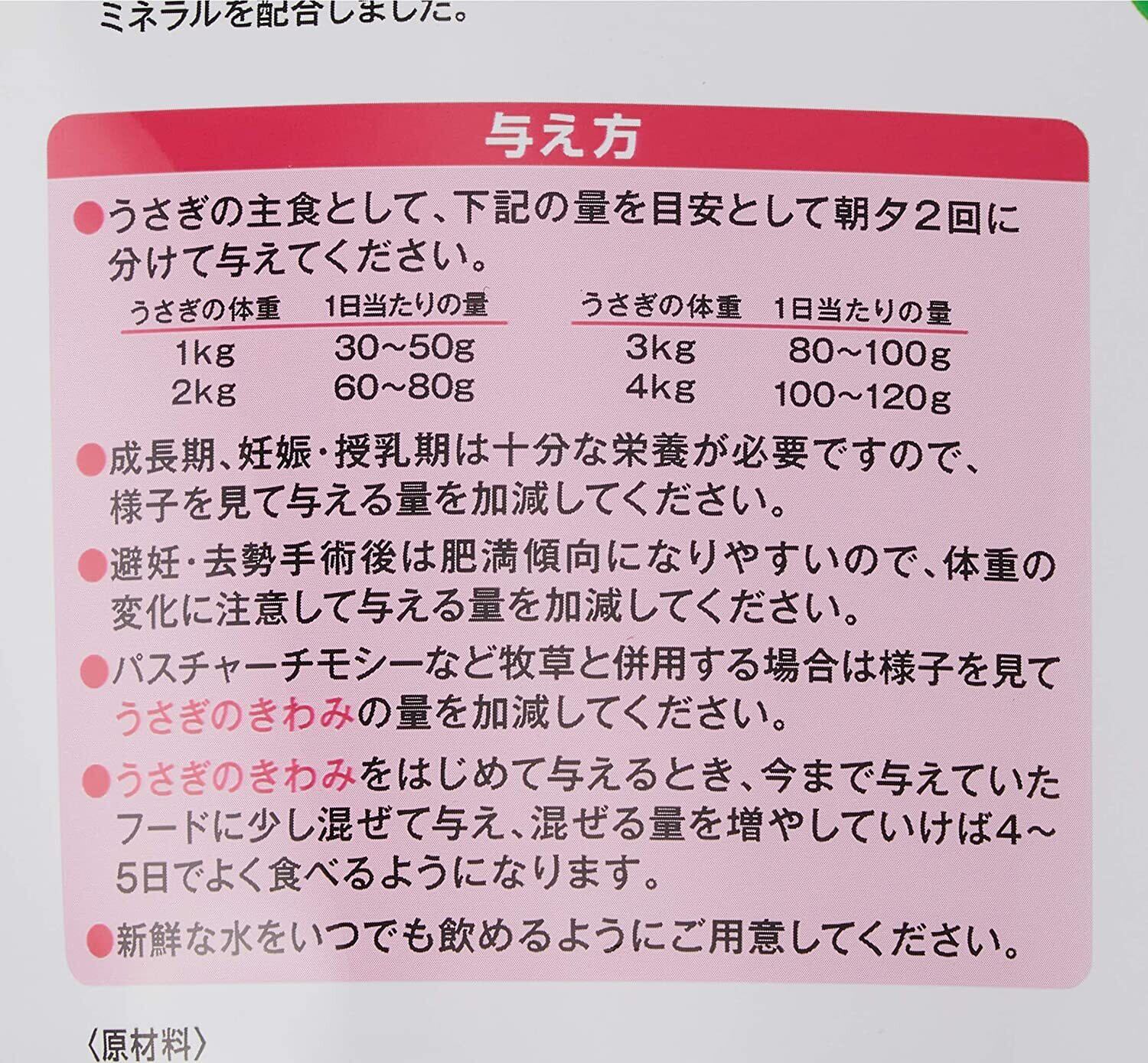 でん粉類・穀類フリー、グルテンフリーの“ダブルフリー! でん粉類(ポテト・タピオカなど)、穀類(小麦粉・トウモロコシ・えん麦)を使用しない配合でカロリーを抑えてあります。 高繊維質プレミアムチモシーを主原料に、うさぎの健康に必要な栄養素をバランスよく含んだオールステージのうさぎの主食です。