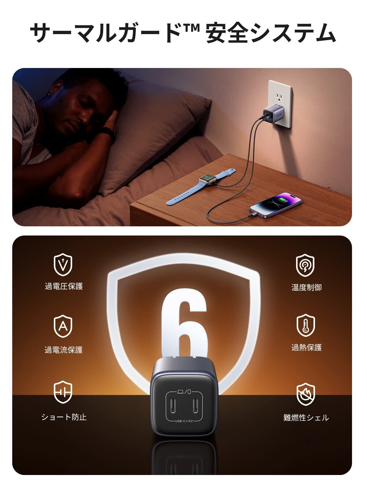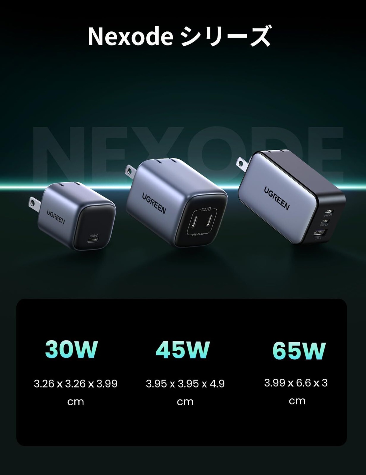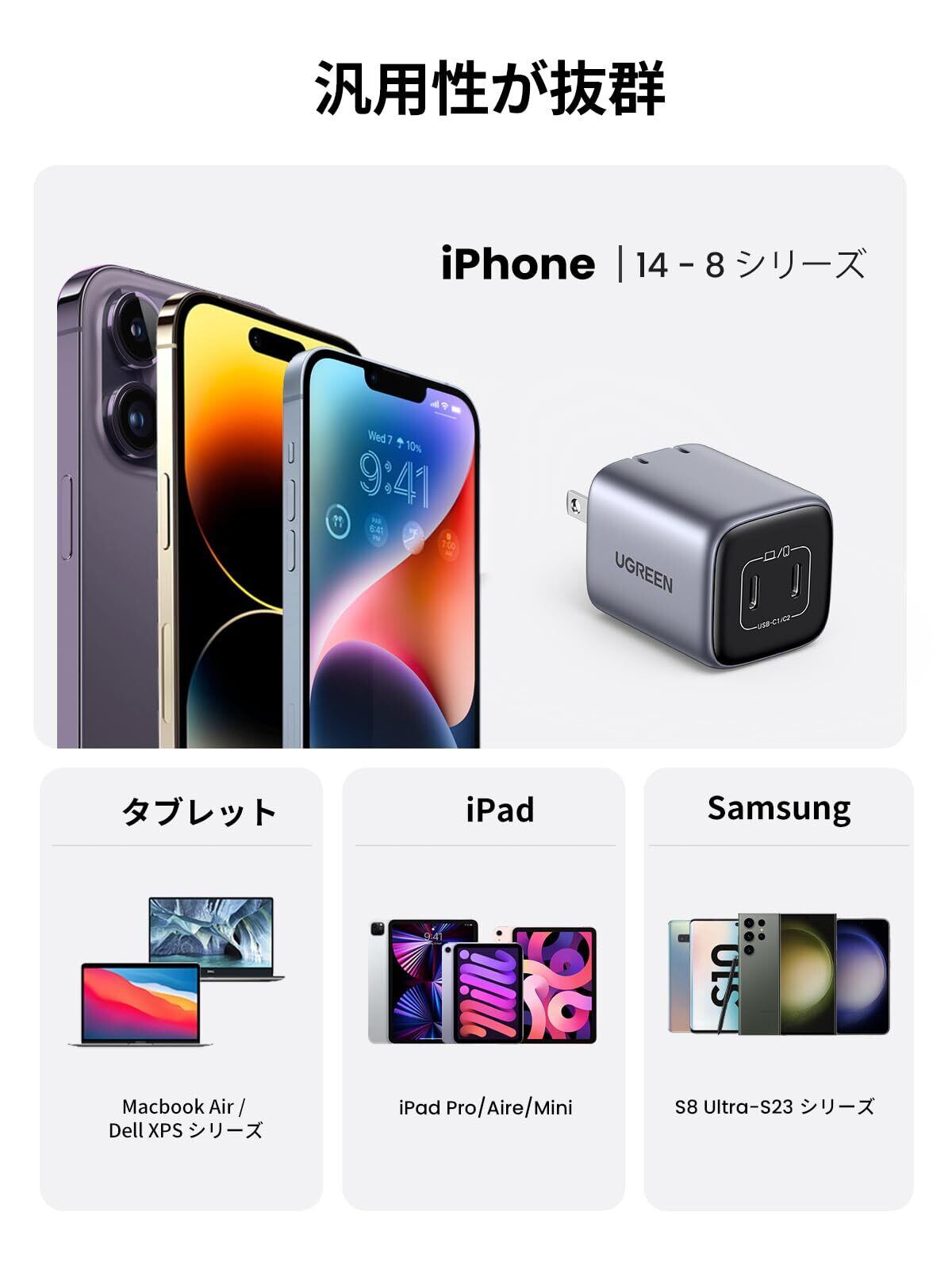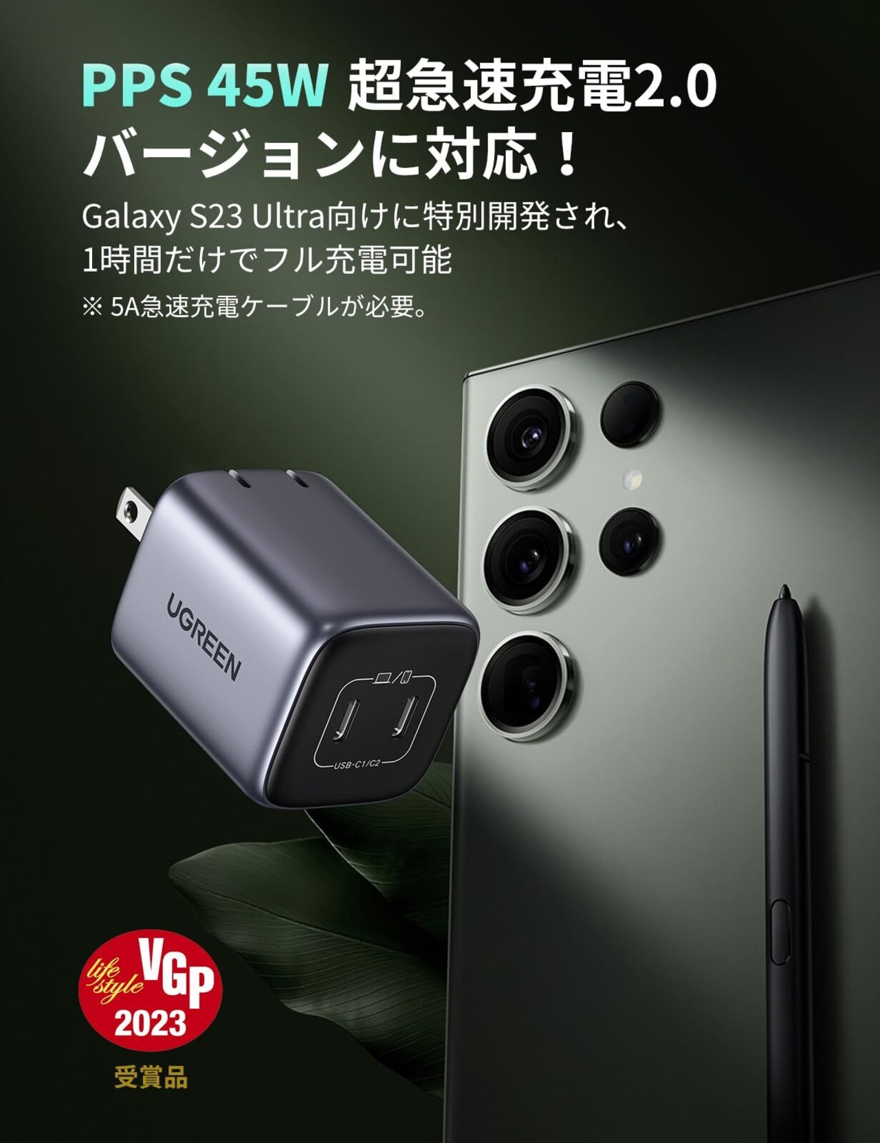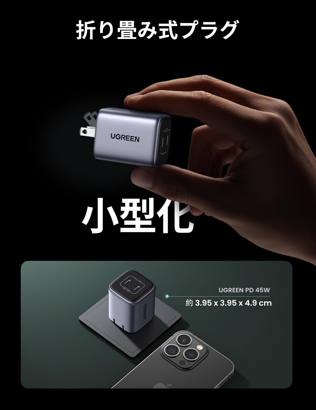 UGREEN Nexode Mini 45W 充電器 USB-C 2ポート PD&PPS高速チャージ対応 GaNFastII(窒化ガリウム)採用 超小型 折畳式プラグ PD/PPS/QC4+/SCP規格対応/PSE技術基準適合 タイプc 充電器 iPhone16-8シリーズ/GalaxyS24-S8シリーズ/MacBook Pro/iPad Pro/Switch その他 各種機器対応 CD294