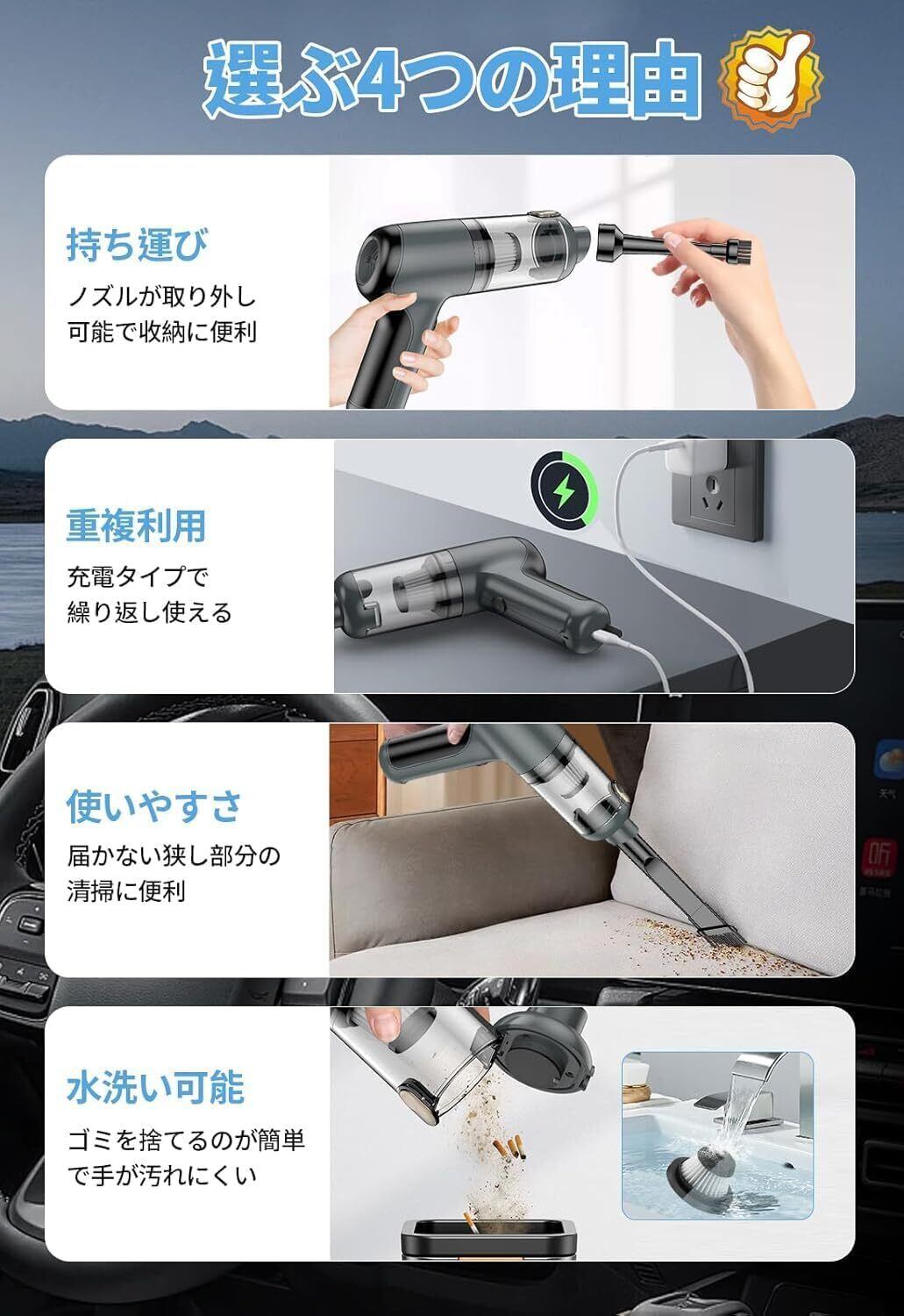 【数量限定】DAYUIRA ハンディクリーナー ハンディ掃除機 【吹き飛ぶ/吸い込む/空気入れ/空気抜き】 28000Pa強力 車用掃除機 Type-C コードレス 小型クリーナー 車 5種類ノズル 4000mAh大容量バッテリ長時間稼働 超軽量 車用ハンディクリーナー USB充電式 キーボード掃除/家具掃除/車内清掃/家庭用/業務用 日本語説明書付き 軽量 (グレー)