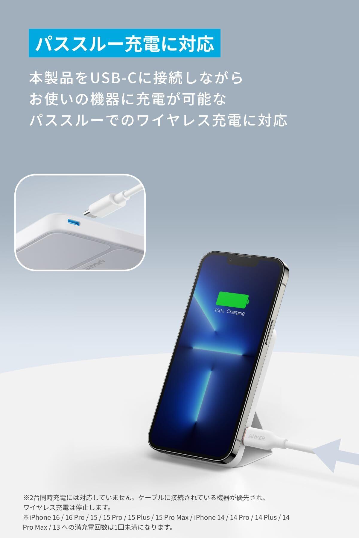Anker 622 Magnetic Battery (MagGo) (アップグレード版 マグネット式ワイヤレス充電対応 5000mAh コンパクト モバイルバッテリー)【マグネット式/ワイヤレス出力 (7.5W) / USB-Cポート入出力/PSE技術基準適合】iPhone 16 / 15 / 14 / 13 シリーズ専用 (ブラック)