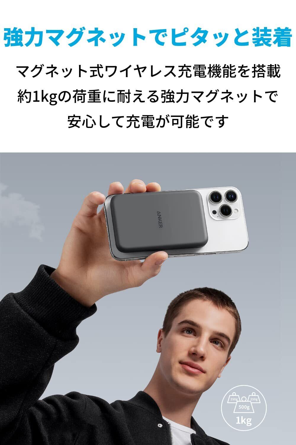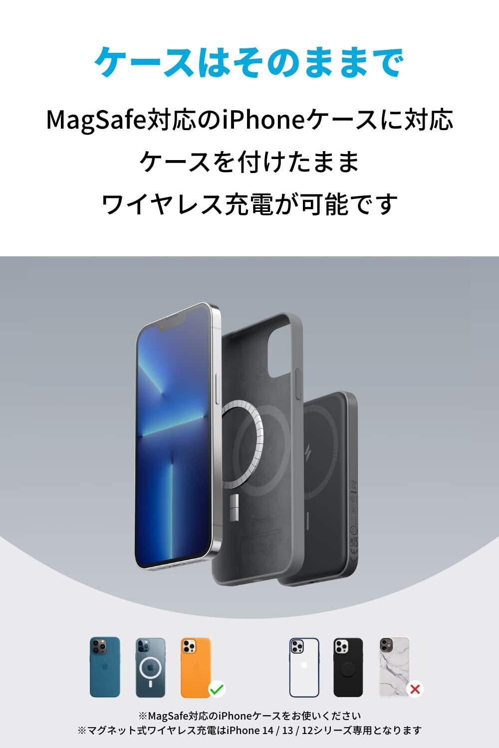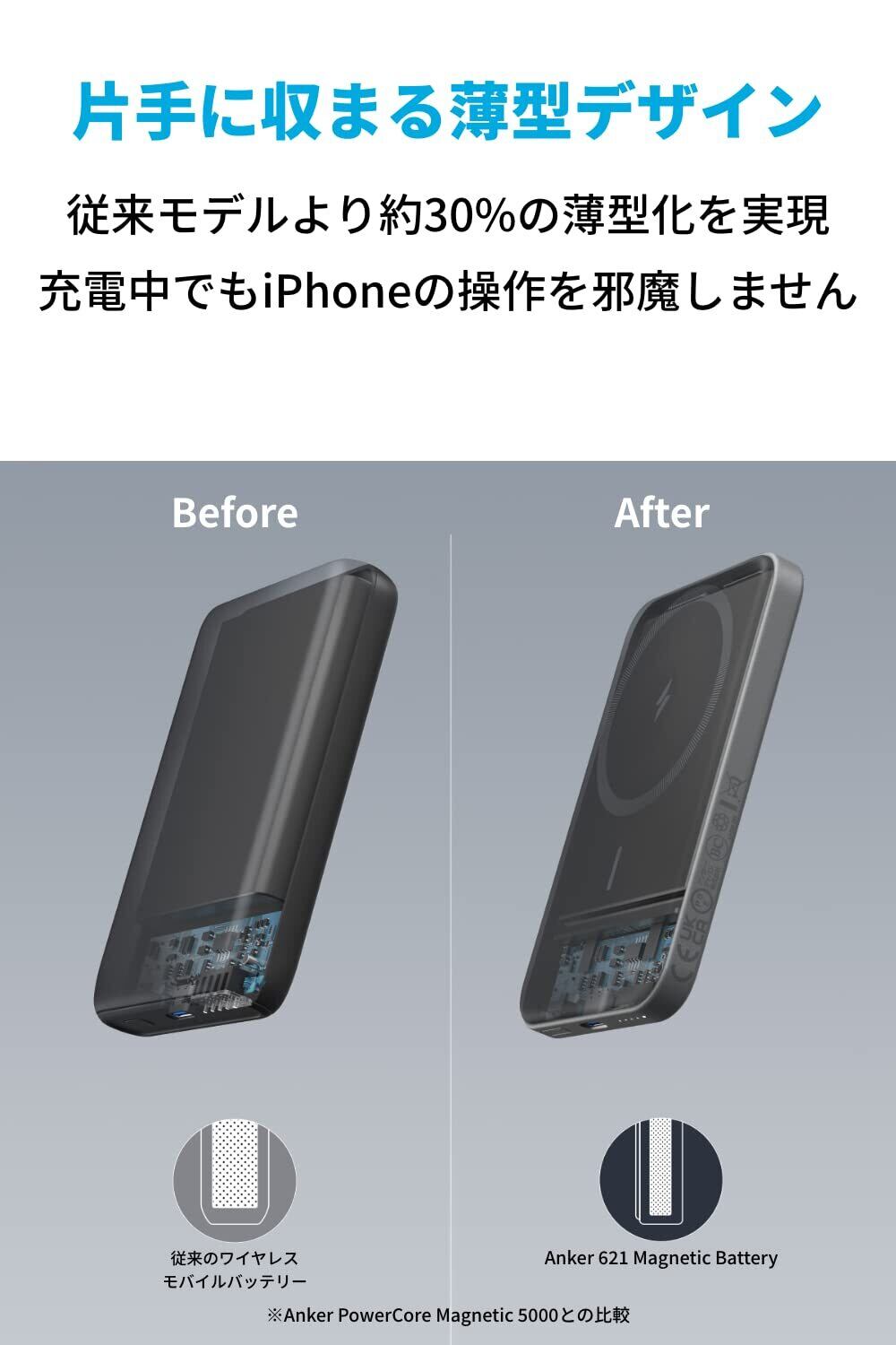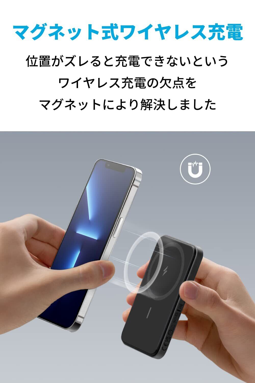 Anker 621 Magnetic Battery (MagGo) (マグネット式ワイヤレス充電対応 5000mAh コンパクト モバイルバッテリー)【マグネット式/ワイヤレス出力 (7.5W) / USB-Cポート入出力/PSE技術基準適合】iPhone 16 / 15 / 14 / 13 シリーズ専用 (ブラック)