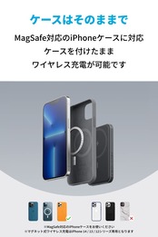 強力マグネットでズレずにピタッとくっつく:MagGoシリーズのマグネット式ワイヤレス充電対応モバイルバッテリー。マグネット式ワイヤレス充電機能を搭載し、外出時にケーブルを使わずにお使いのMagSafe対応iPhoneシリーズへ充電が可能です。約1kgの荷重に耐える強力マグネットによりズレることなく安定して充電できます。