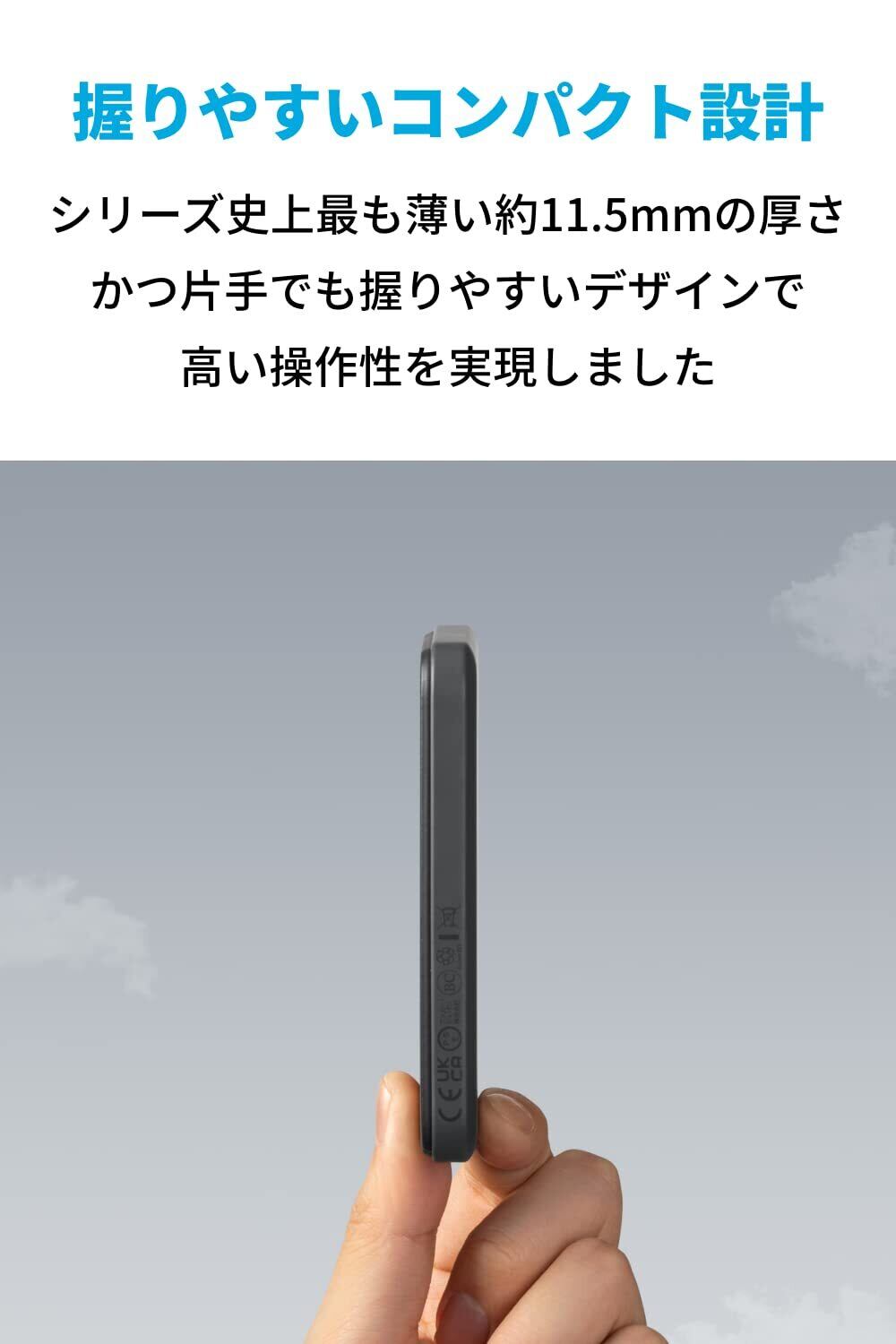 コンパクトながらパワフル:薄さわずか11.5mmのすっきりとしたスリムなデザインで、片手で通話や自撮りなどを楽しめます。超コンパクト設計ながら、5000mAhの容量かつ7.5W出力でiPhone 14 / 13 / 12シリーズへ約1回充電が可能です。※iPhone 14 / 14 Plus / 14 Pro / 14 Pro Max / 13 / iPhone 13 Pro / 13 Pro Max への満充電回数は1回未満になります (Anker調べ) 。