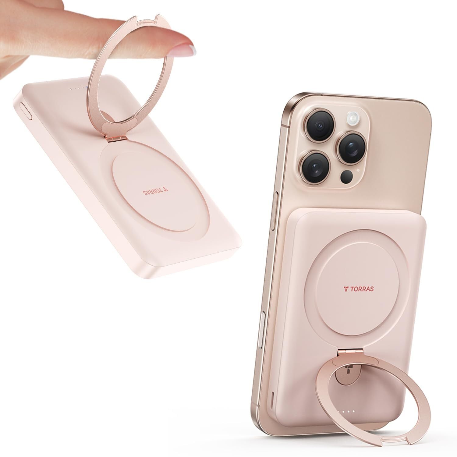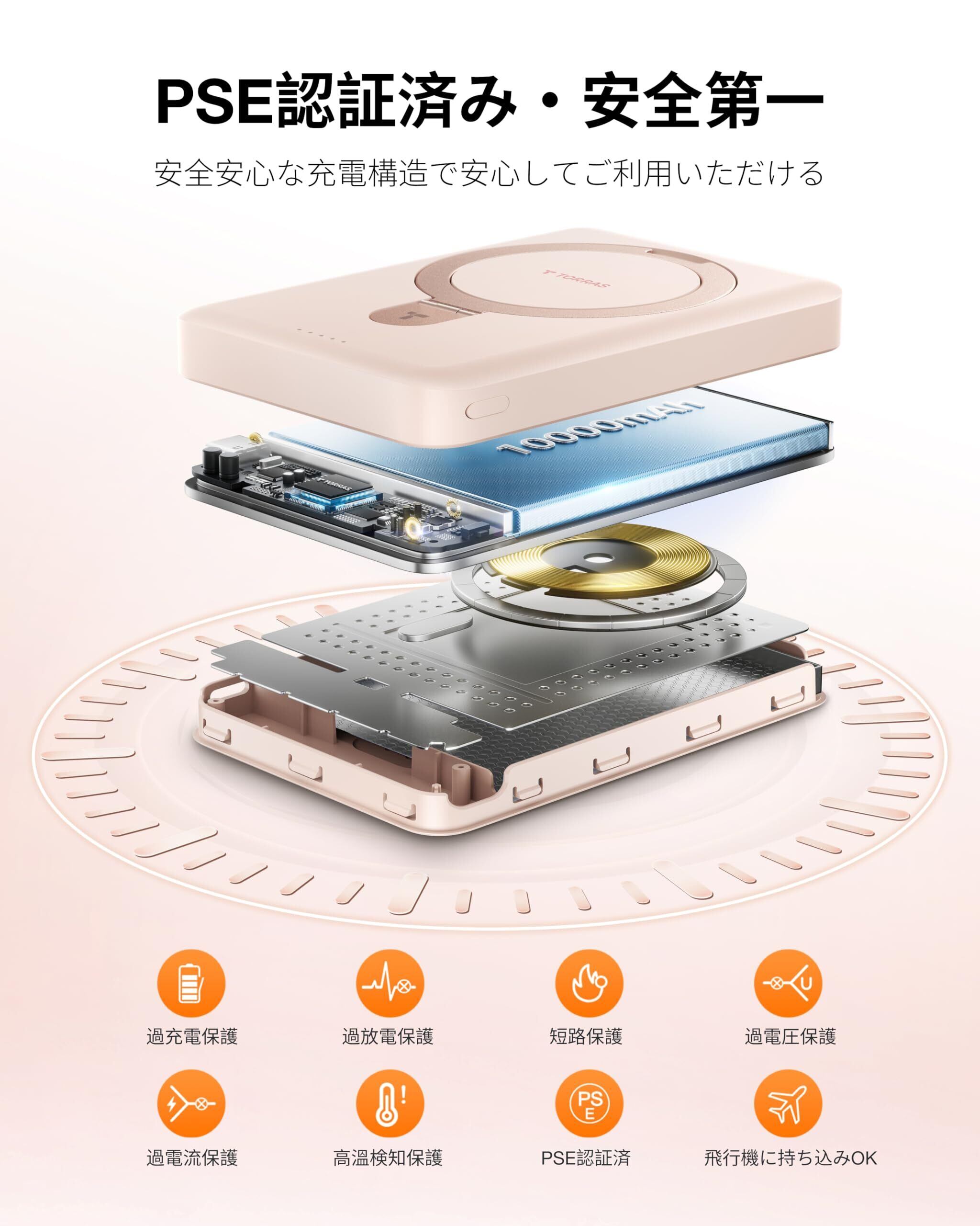 【特価商品】【2025傑作・EASY GO】 TORRAS モバイルバッテリー Magsafe 10000mah 軽量 小型 【Apple社同源電池セル&スタンド機能改良】 モバイル バッテリー マグセーフ 携帯充電器 最大22.5W 急速充電 Power Bank 大容量 モバ充電 マグネット ワイヤレス 充電器 パススルー機能 PSE認証済み iPhoneのみ対応 旅行 出張 ローズゴールド | ニコニコSHOP