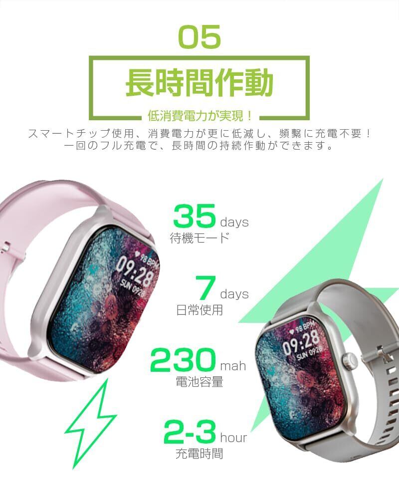 【大容量バッテリー&IP68防水防塵】耐久性の高い大容量バッテリーが搭載されており、一度の完全充電で、3-7日間の連続使用が可能で、待機時間は約35日間にも及びます。頻繁な充電という煩わしさが解消されます。IP68の防水防塵機能を持つので、日常の雨の中での外出や、食事の際の水しぶきにも耐えられ、また汗をかきながらのエクササイズにも安心して使用できるエレクトロニック・ブレスレットです。(プールや海水浴、ダイビングなどの水中での使用は避けてください)