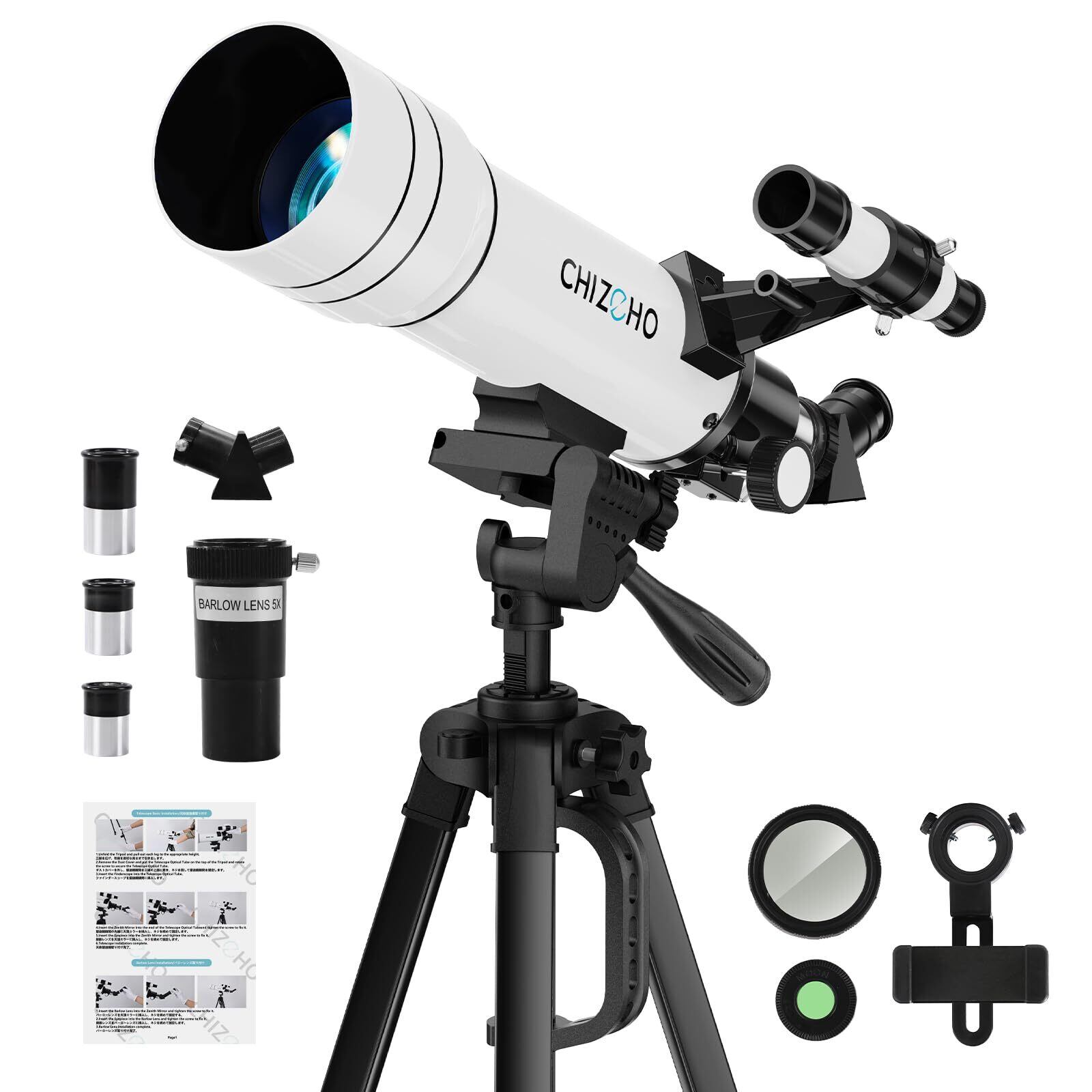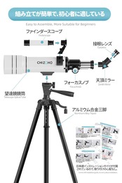 [日本語の取扱説明書と専門のオンラインテクニカルサポートで、設置から使用まで安心です] CHIZEHO天体望遠鏡は、子供や初心者向けの製品として、詳細な日本語の組み立てマニュアルが付属しており、使い方の難しさを最小限に抑えることができます。さらに、1年間の製品保証と24時間365日のオンラインアフターサービスがあり、安心してご利用いただけます。商品に問題がある場合は、いつでも販売者にご連絡ください。