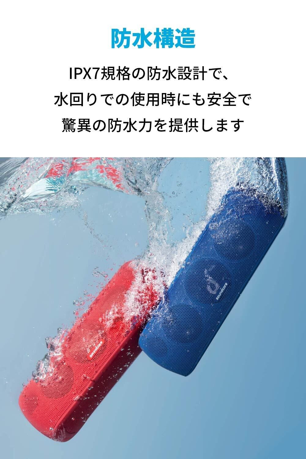 IPX7防水規格:最長30分間であれば水深1mまで沈めても操作可能なIPX7の防水設計で、海やプール、お風呂場等でも気軽にお気に入りの音楽を堪能できます。