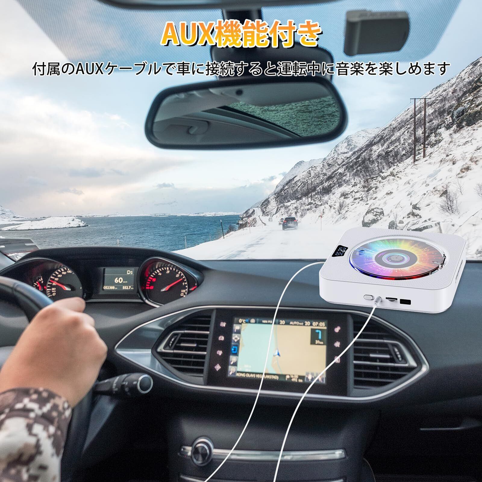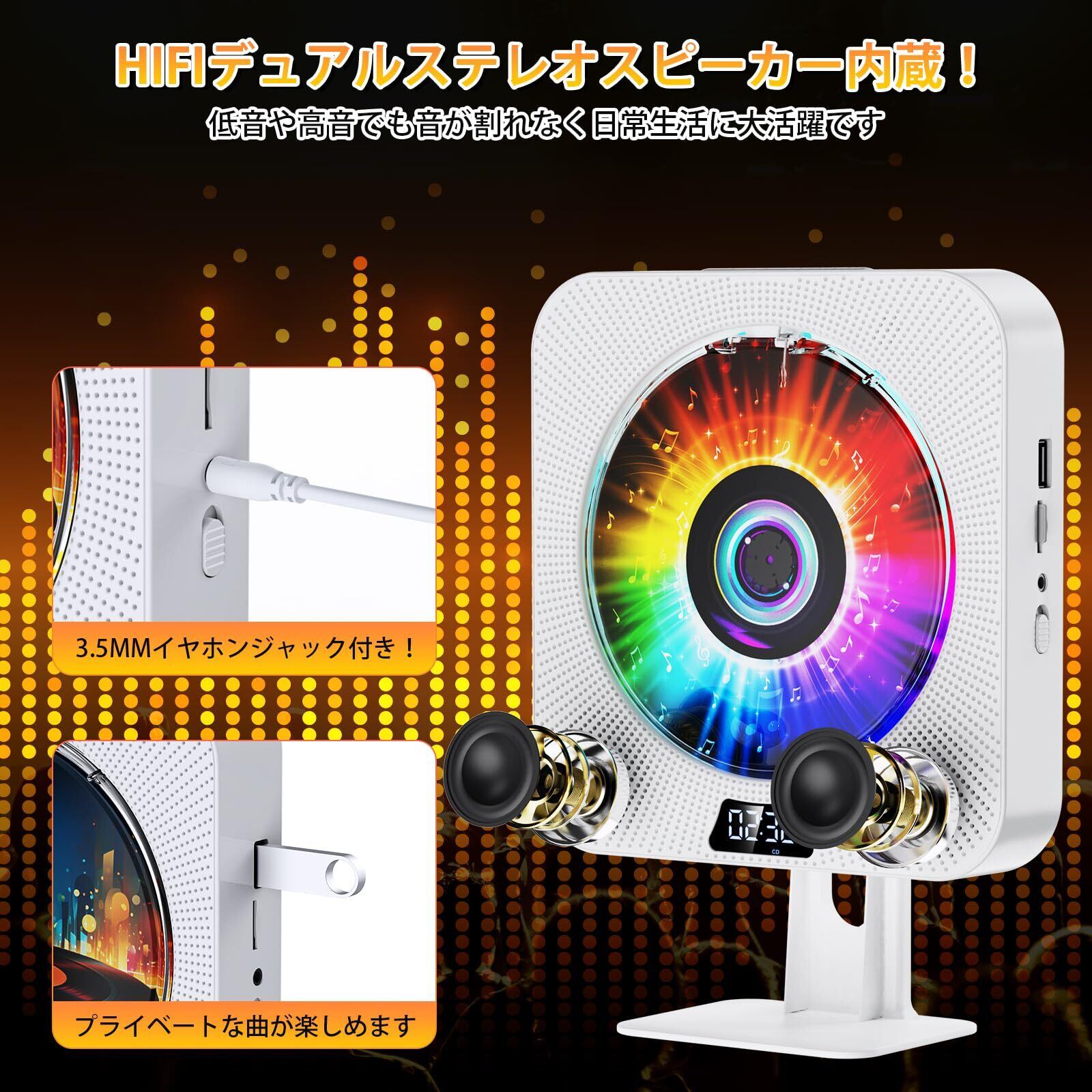 bluetooth送受信両対応, HiFiスピーカー内蔵, 操作簡単で高齢者向けのCDプレーヤー, 外観おしゃれな壁掛けCDプレーヤー, FMラジオ、AUX機能/USB、TFカードの再生A-Bリピート再生、定時ON/OFF機能、睡眠モードと記憶再生機能