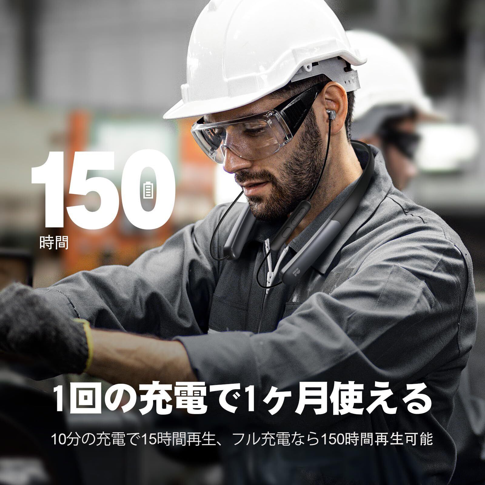 Rythflo Bluetoothイヤホン ネックバンド型 150時間連続再生 ワイヤレスBluetoothイヤホン マイク付き 首掛け イヤフォン ブルートゥースイヤホン 防水IPX7 重低音仕様 Type-C急速充電 家庭用、旅行、アウトドア 出張に最適