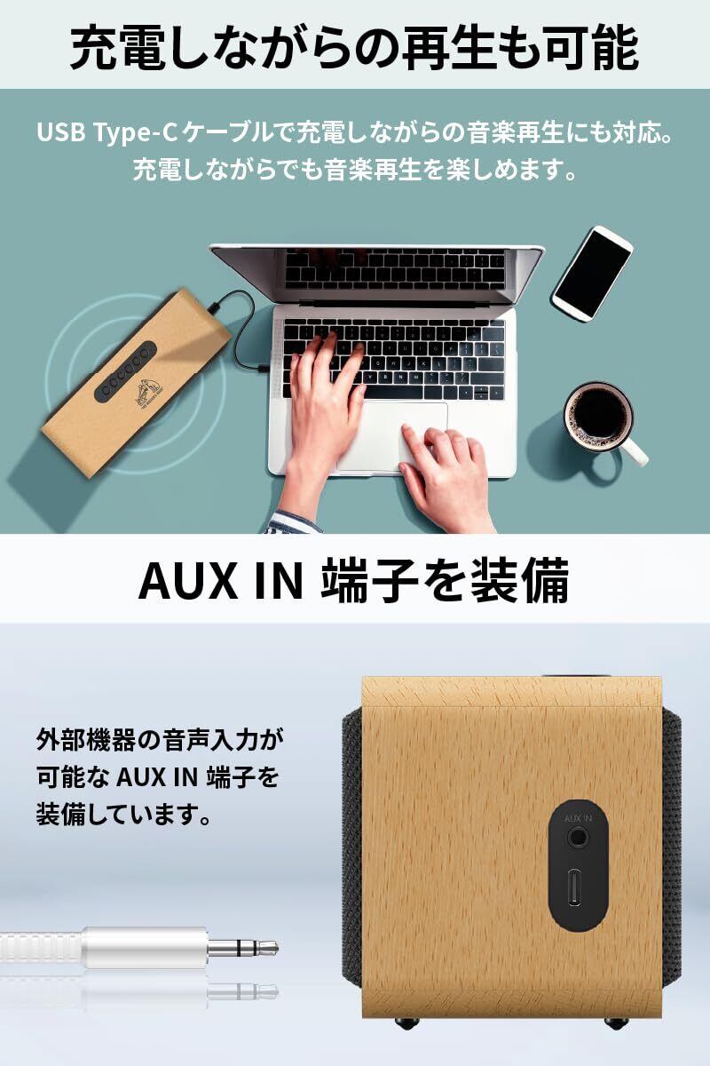JVCケンウッド Victor SP-WS02BT Bluetooth スピーカー 小型 最大12時間再生 ステレオペアリング ポータブルスピーカー AUX対応 出力20W USB-C充電 ウッドデザイン