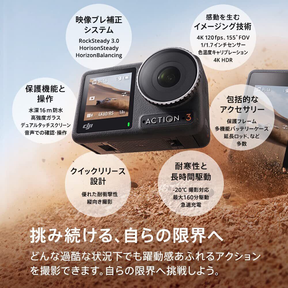 【在庫処分】DJI アクションカメラ Osmo Action 3 アドベンチャーコンボ 防水性 4K HDR 10-bit色深度 HorizonSteady 耐寒性&長時間駆動 バッテリーケース 延長ロッド機能搭載 YouTube&Vlog撮影4Kカメラ 【国内正規品】