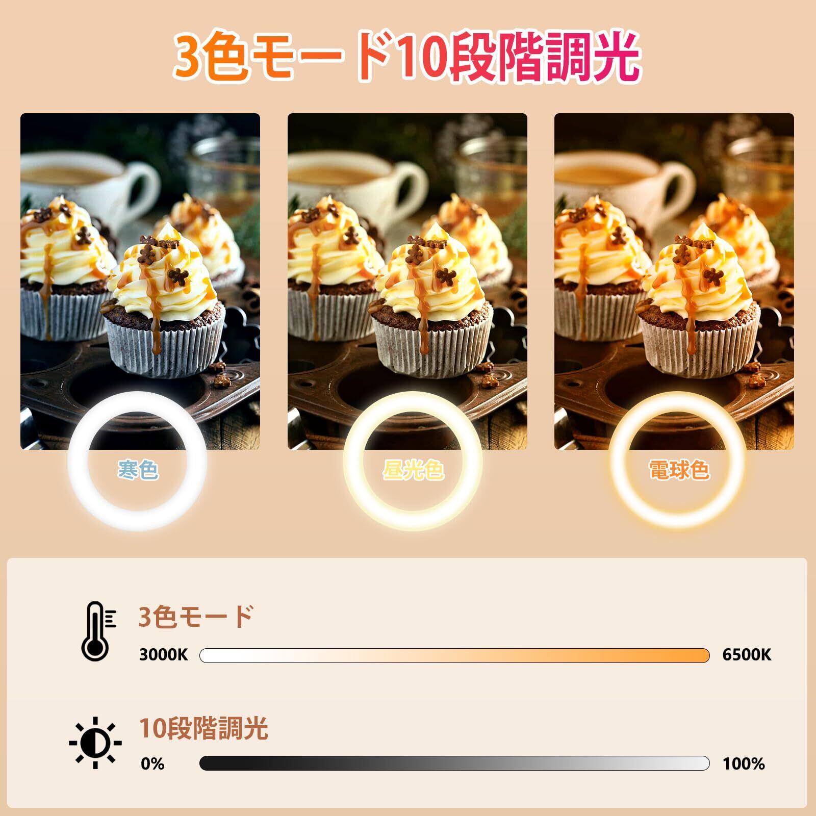 【高品質な光源、CRI>95】Evershopのリングライトは、高品質のLED光源を採用しており、精巧に設計されています。これにより、均一で柔らかな照明効果が得られます。3つの色温度と10段階の調光機能を備え、環境や気分に合わせて調整できます。また、色再現性が95を超えており、撮影された物体の真の色彩を正確に再現します。これにより、光の均一性や影の問題に心配する必要がなく、撮影プロセスがスムーズで楽しくなります。