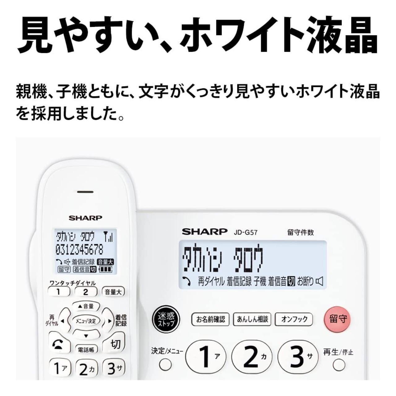 シャープ コードレス 電話機 コンパクトタイプ 親機コードレス ホワイト系 受話子機+子機1台 JD-G57CL