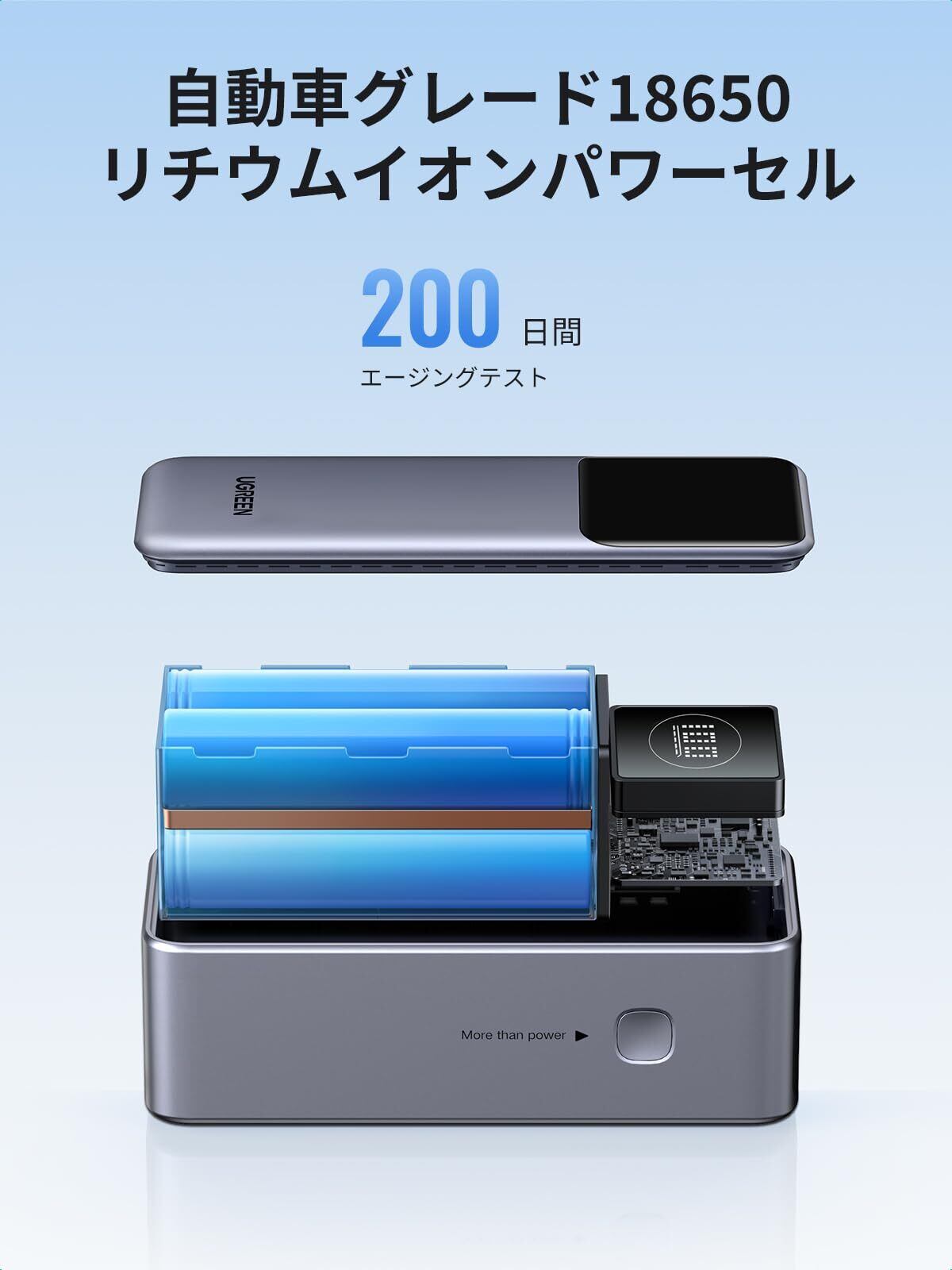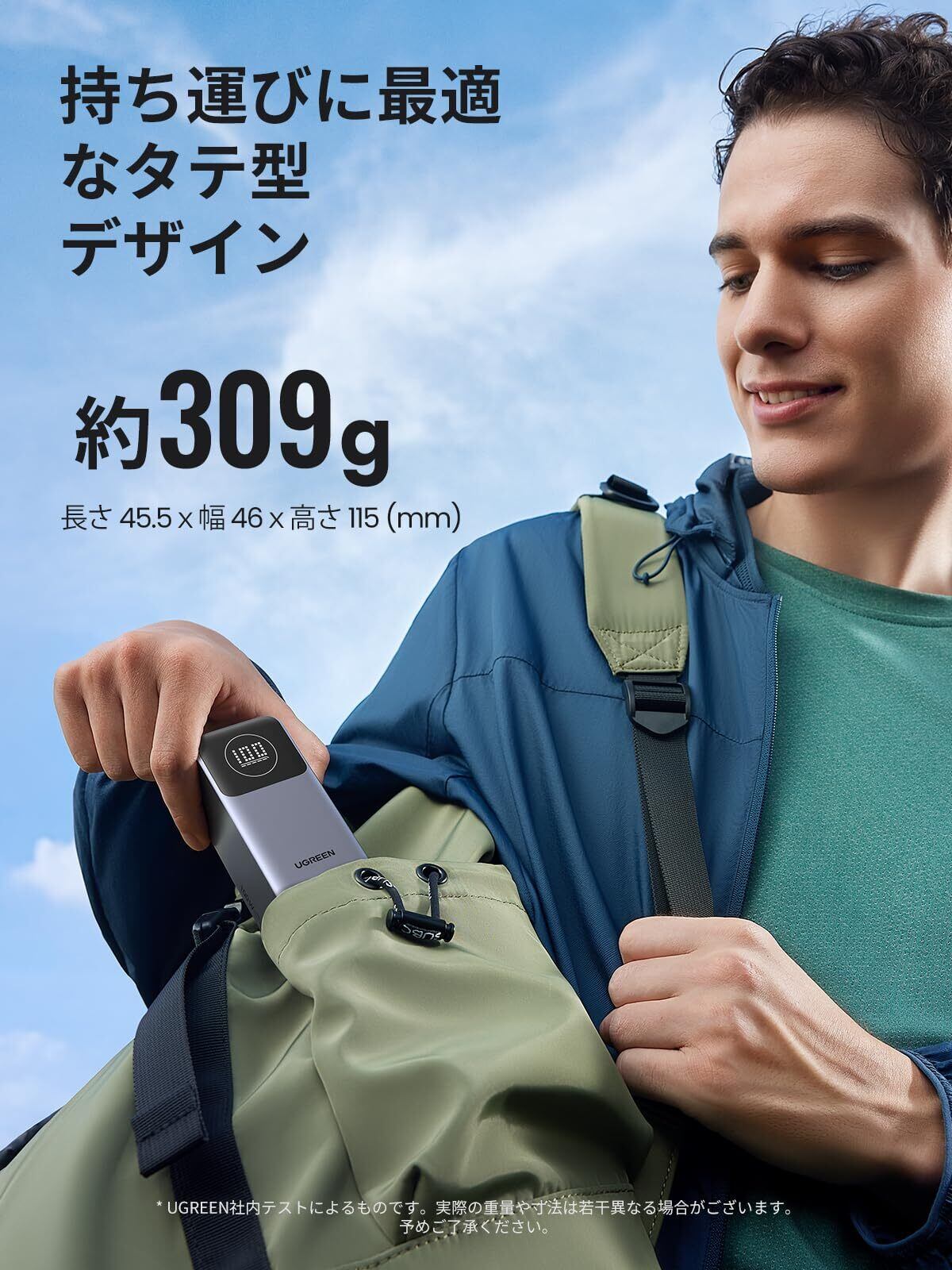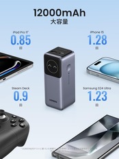 【12000mAh大容量・持ち運びに最適なタテ型デザイン】iPhone 15を約1.28回、iPad Pro 11"を約0.85回充電可能な12000mAhの大容量でありながら、軽量(約309g)でコンパクト、持ち運びに最適なデザインだから、ついつい持ち歩きたくなります。UGREEN Nexode モバイルバッテリー当社比最小モデルです。