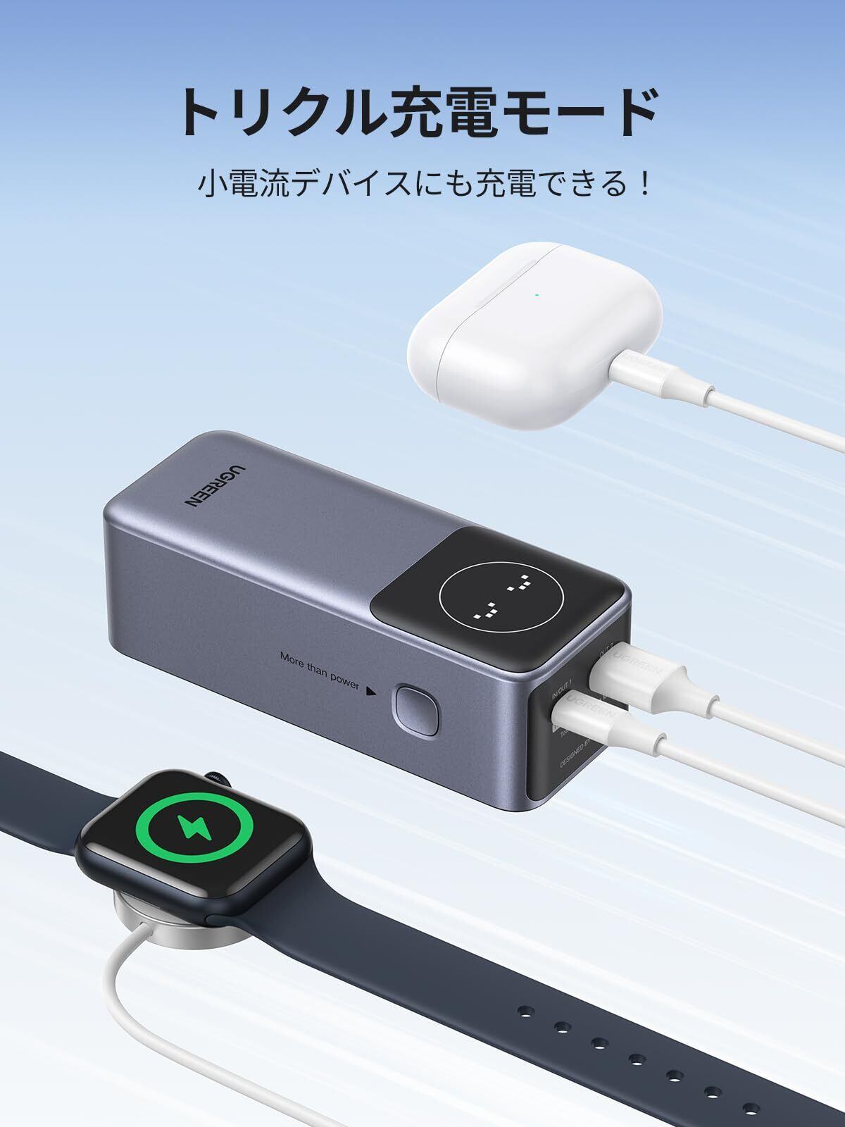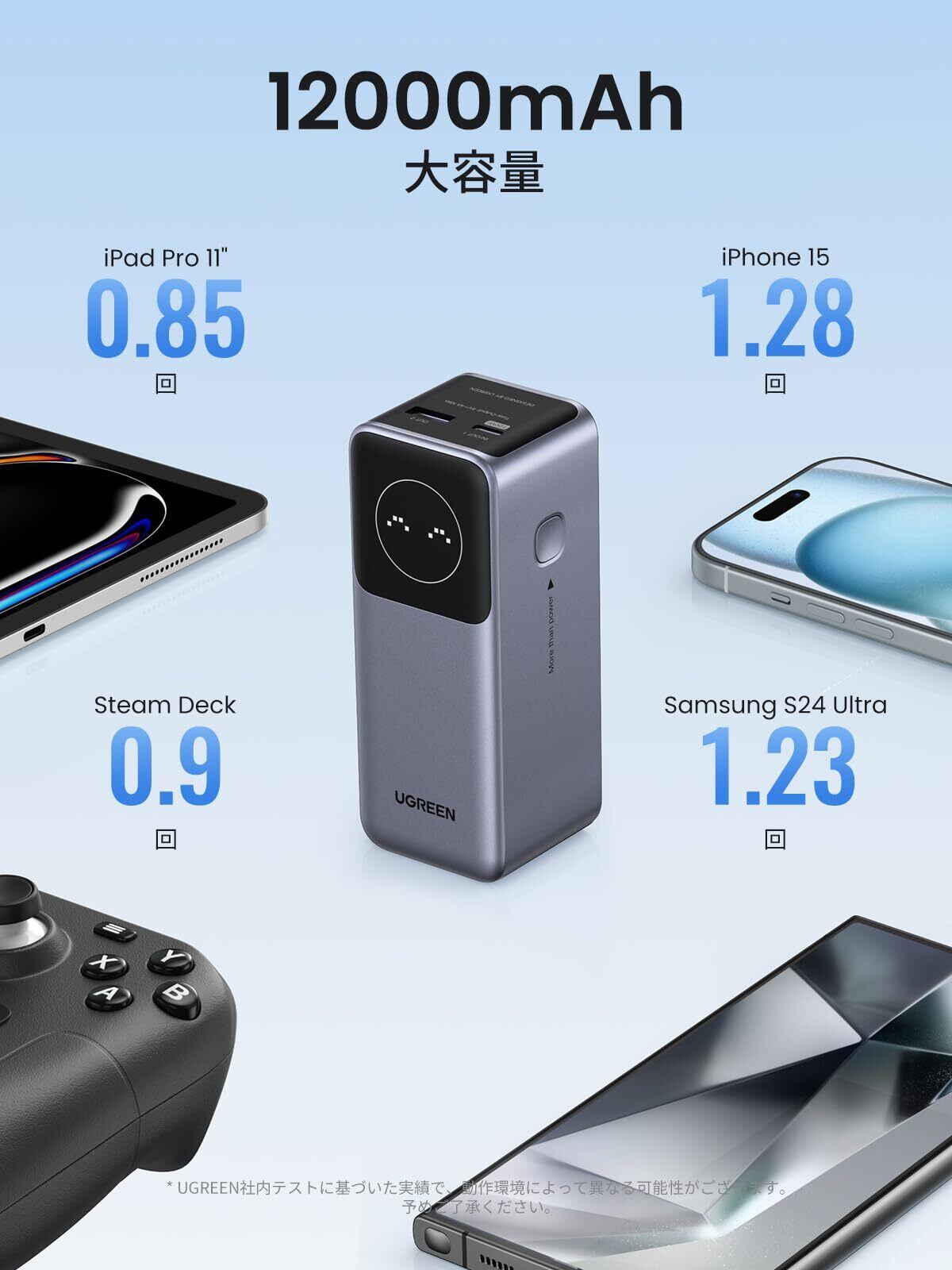 UGREEN Nexode モバイルバッテリー (12000mAh・100W) 2ポート USB-C+USB-A 小型コンパクト PD急速充電対応 大容量 縦置きデザイン 省スペース LCDディスプレイ搭載 パススルー機能 低電流モード搭載 PPS規格対応 PSE技術基準適合 iPad Pro iPhone Galaxy Android スマートフォン タブレット その他 PB724