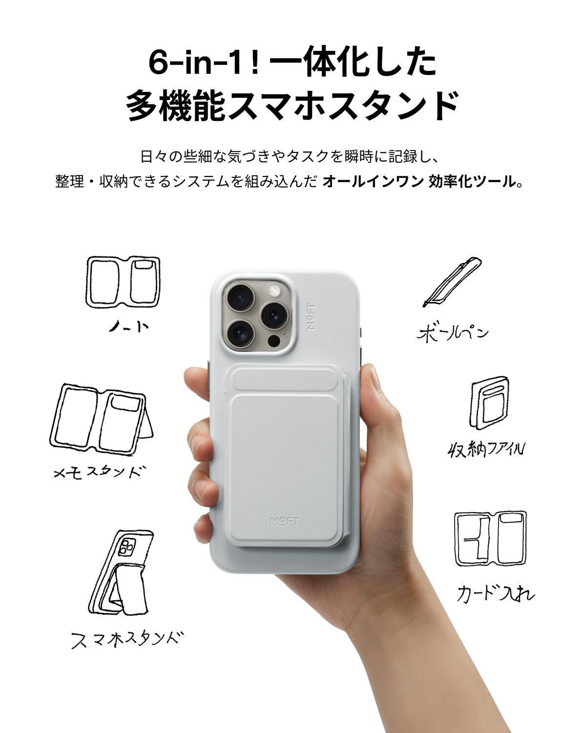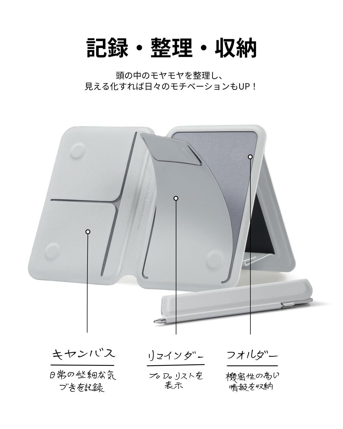 MOFT【公式直営店】スマホスタンド モフト インスピレーションスタンド&ノート 折りたたみボールペン MagSafe対応 iPhone 16/15/14/13/12シリーズ対応 ノートパッド付け 全機種対応 軽量 折りたたみ アイアンリング付き MOVAS™素材 手書き/記録/リマインダー/フォルダー/ワークスペース