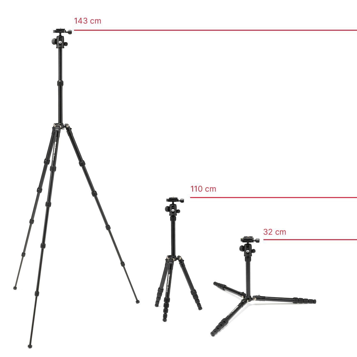 マンフロット(Manfrotto) Elementトラベル三脚 スモール ブラック コンパクト 軽量 折り畳み式 キャリーケース付き ボール雲台搭載 耐荷重4kg 全伸高143cm MKELES5BK-BH