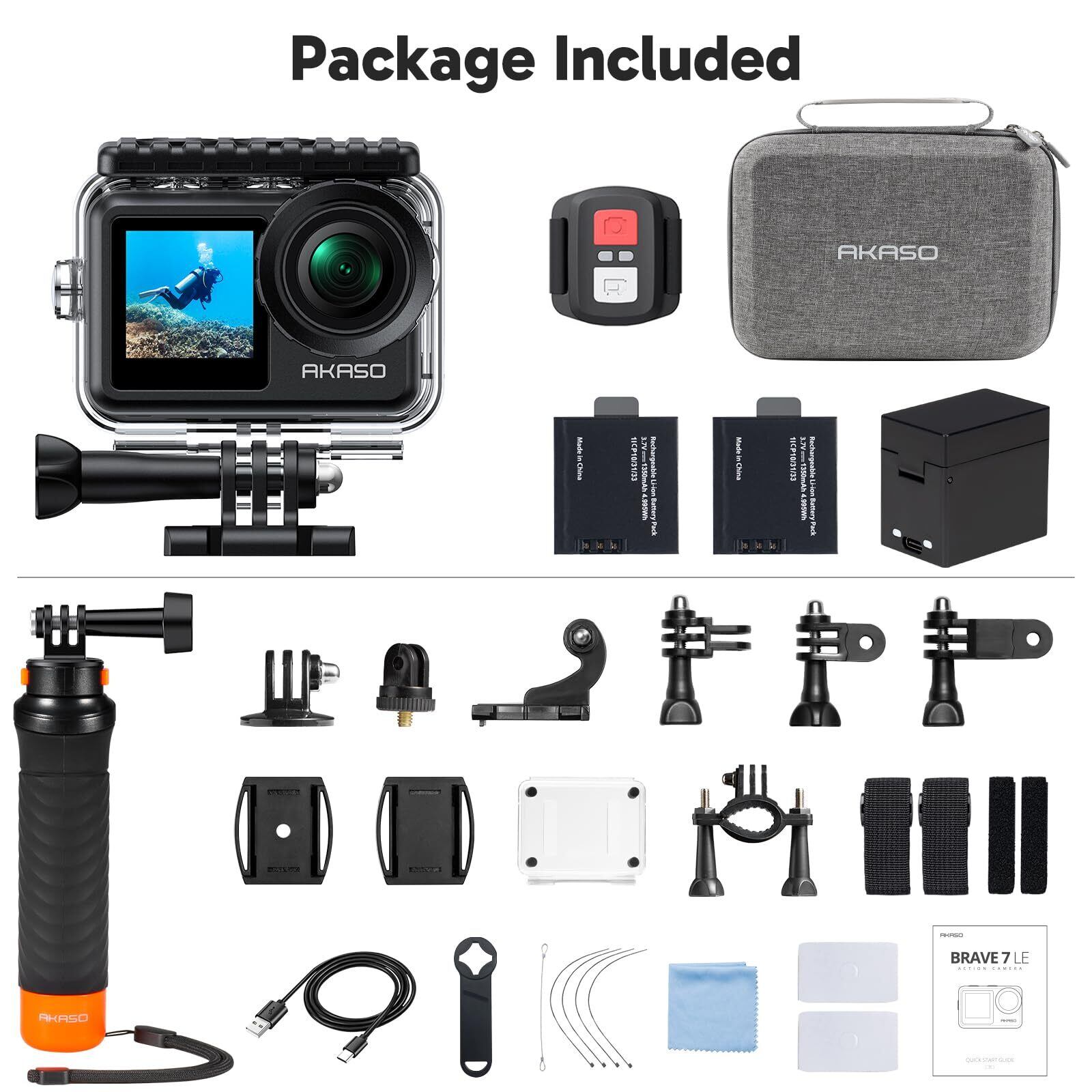 【数量限定】AKASO Brave 7 LE アクションカメラ 4K60fps 20MP IPX7本機防水 40M防水 水中カメラ 六軸手ぶれ補正 アクションカム デュアルカラー タッチパネル式 タイムラプス WiFi/Type-C外部マイク対応 1350mAhバッテリー2個 リモコン付き フローティングハンと収納付き | ニコニコSHOP