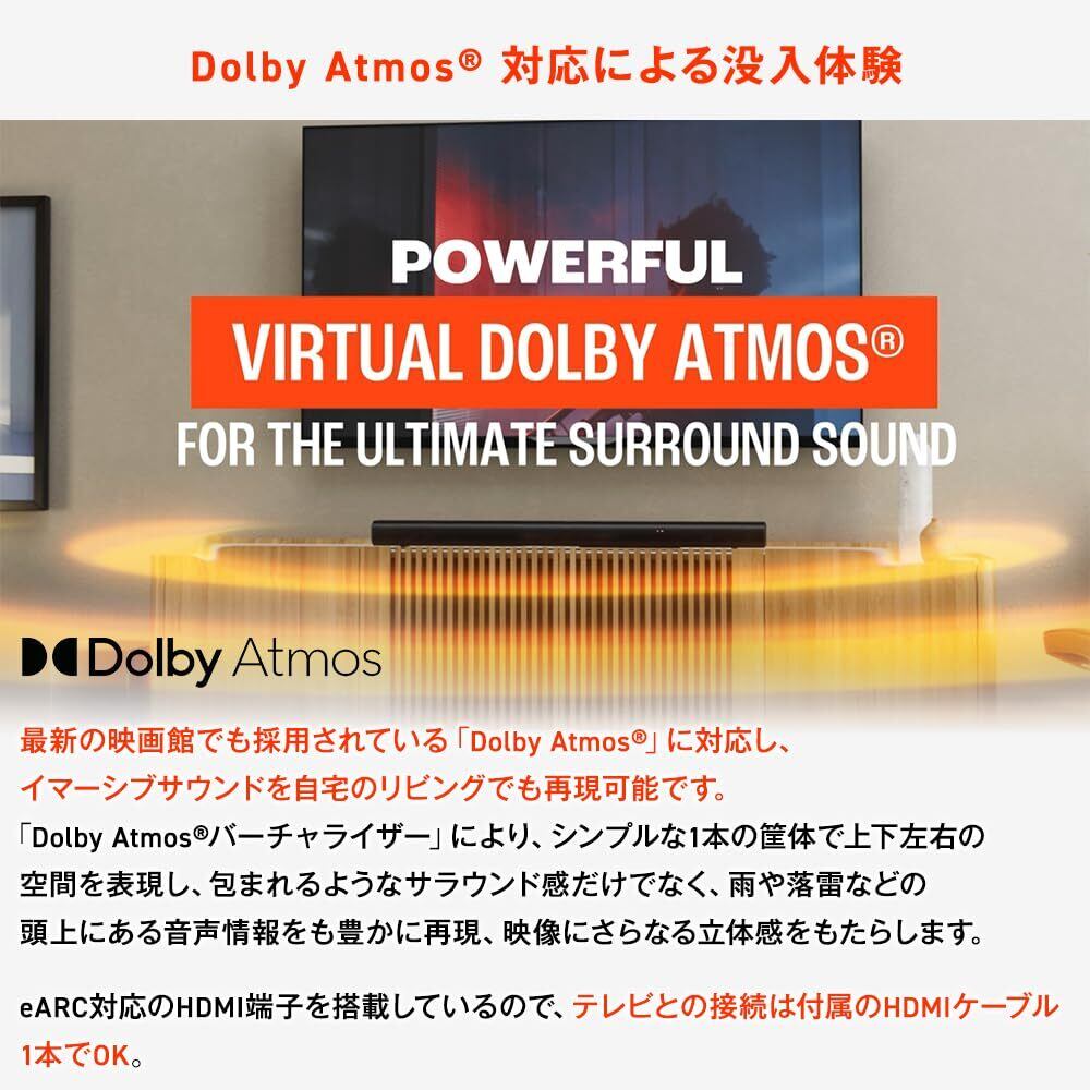 楽しむコンテンツに合わせて「Movie」「Music」「Voice」の3つのサウンドモードが選択可能。Dolby Atmosによるバーチャル3Dサラウンド効果のオン/オフや、低温の5段階調整など、時間帯に合わせて調節も可能。