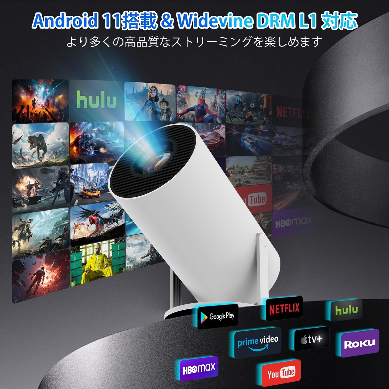 プロジェクター - FancyDay プロジェクター 小型 Android 11.0 家庭用 4K対応 1080P対応 180°回転 12000LM高輝度 Wifi 6 Bluetooth5.4 内蔵スピーカー 自動台形補正 天井投影 防塵 静音 短距離投影 PC/PS5/Switch/FireTV Stick/DVD/USBなど対応