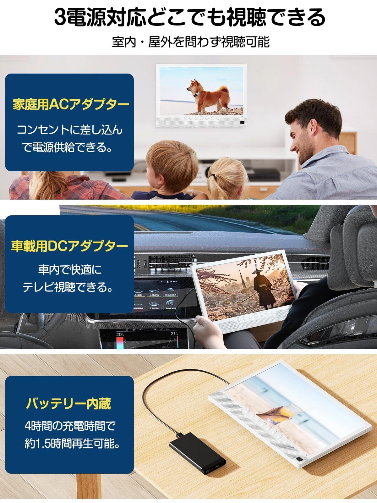 TKUIN ポータブルテレビ 小型テレビ HDMI入力 録画機能 ワンセグ フルセグテレビ自動切替 コンパクトTV 車中泊 テレビ 液晶 卓上/壁掛け/車載 リモコン 車載用バッグ アンテナ 3電源方式 youtube対応 簡単操作 屋外 屋内 マルチプレーヤー (ホワイト)