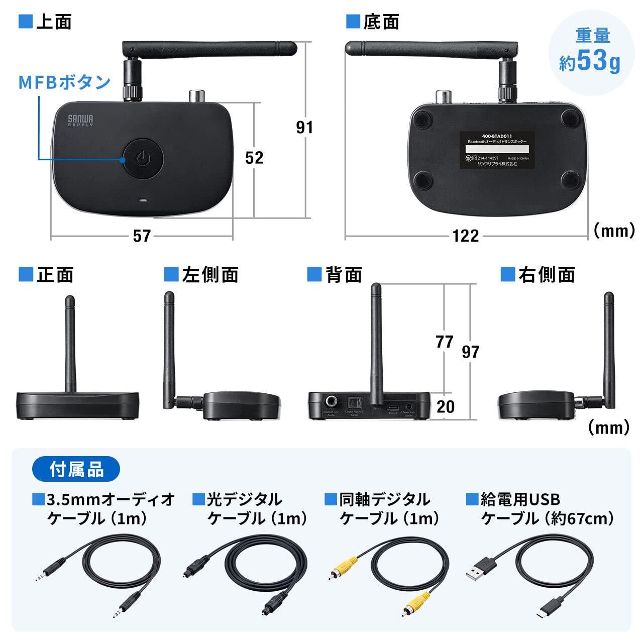 【特価セール】サンワダイレクト Bluetoothトランスミッター テレビ用 2台同時にapt-X LL接続 USB給電 光デジタル 3.5mm 同軸デジタル 400-BTAD011 | ニコニコSHOP