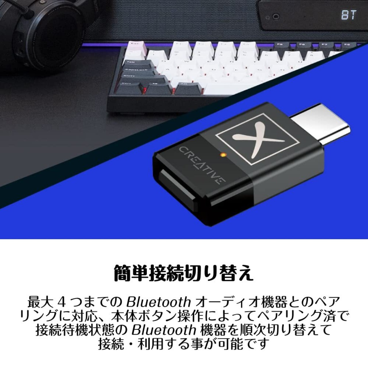 【ご購入前に必ずお読みください】1.BT-W5はiPhone等のスマートホンやiPad、DAPとの動作は保証しておりません。そのためスマートホン用のアプリもありません。2.BT-W5はaptX Low Latency / aptX Lossless / HDには対応していません。3.USBハブをご利用の場合は、必ずACアダプタで電源を供給されるタイプをご用意ください。4.周囲のWi-Fiなど無線信号/電波が干渉する可能性があるので、周囲に電子レンジ、コードレス電話などがある・別のBluetooth機器が近くにある場所でのご使用はご注意ください。 注: 本製品のパッケージには、USB C-A変換アダプターとアナログ マイクは含まれていません。【CREATIVE製品は技適マーク取得後販売しています】