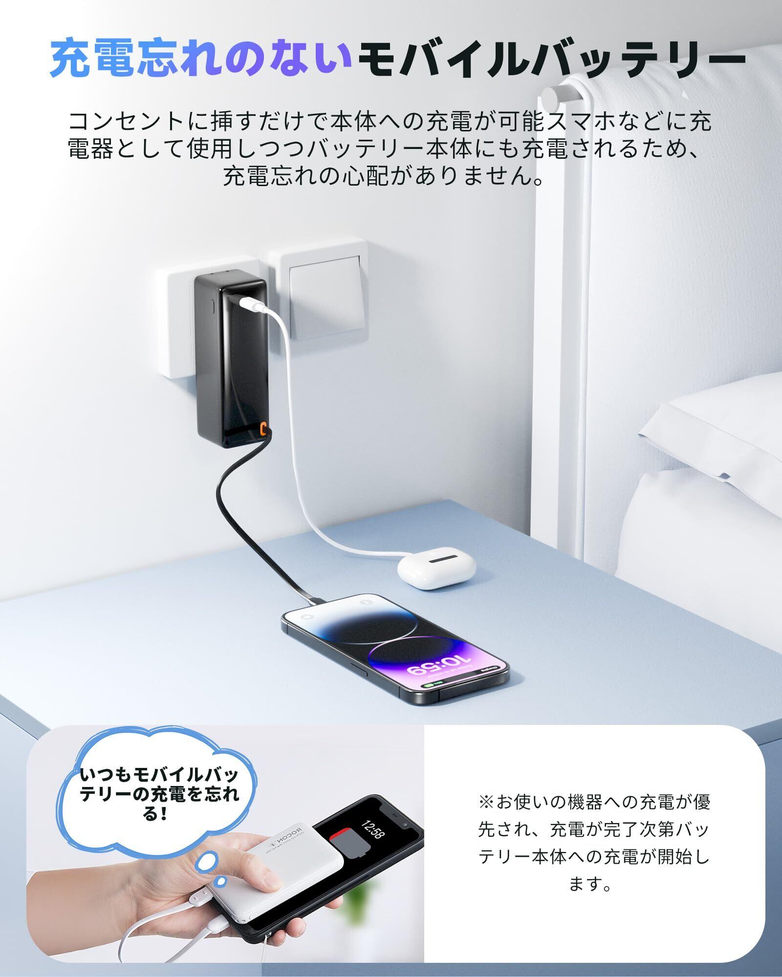 【GaNモバイルバッテリー:速さと安全性】氮化ガリウム(GaN)モバイルバッテリーは、高い電力変換効率により、驚くほど迅速な充電を実現します。さらに、優れた熱放散性能により、過熱リスクを効果的に低減し、デバイスの寿命を延ばします。環境に優しい氮化ガリウム(GaN)を使用しているため、持続可能な選択肢を提供し、あなたの生活をより良いものにします。この機会にぜひ、氮化ガリウムモバイルバッテリーで充電の新しい時代を体験してみてください!