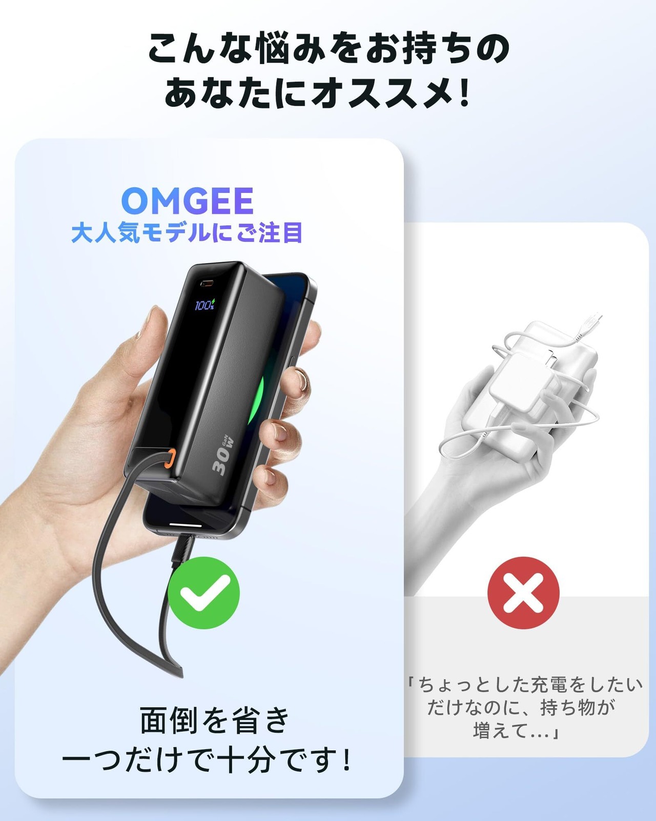 【大容量モバイルバッテリー:30W急速充電】10,000mAhのモバイルバッテリーは、一度の満充電でスマホを約3〜4回充電することができるため、日常的にスマホやUSB機器をよく使用し、頻繁に充電切れが心配になる方にオススメです。充電器としては最大20W、モバイルバッテリーとしても最大30W出力でiPhone16シリーズへ充電が可能、急速充電対応で充電時間を削減できます。外出や出張が多い方も使いやすいモデルが揃っているため、“初めての一台”は、この容量帯を選んでおけば困ることはありません。