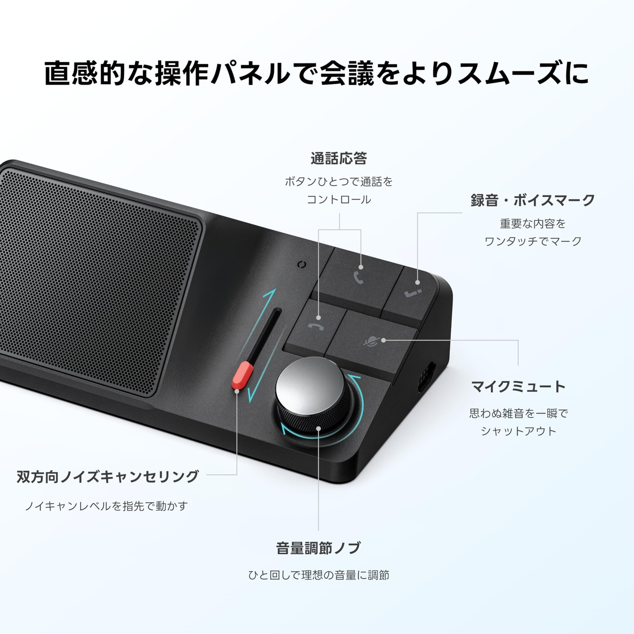 【Web会議を録音できるノイキャン付きスピーカーマイク】USB-CケーブルでPCに接続するだけで、Web会議の音声出力や入力として使用可能、ワンタッチで会議を録音。Bluetooth経由でスマホの電話録音やタブレットの録音にも対応。通話中、HiDock独自の双方向ノイズキャンセリング(BNC)技術により、キーボードの打鍵音・ペットの鳴き声・街の騒音など、自分と相手双方のあらゆる騒音を瞬間でカット。*注意:録音する際デバイスおよび会議アプリの音声出力と入力の両方をHiDockに設置する必要があります。