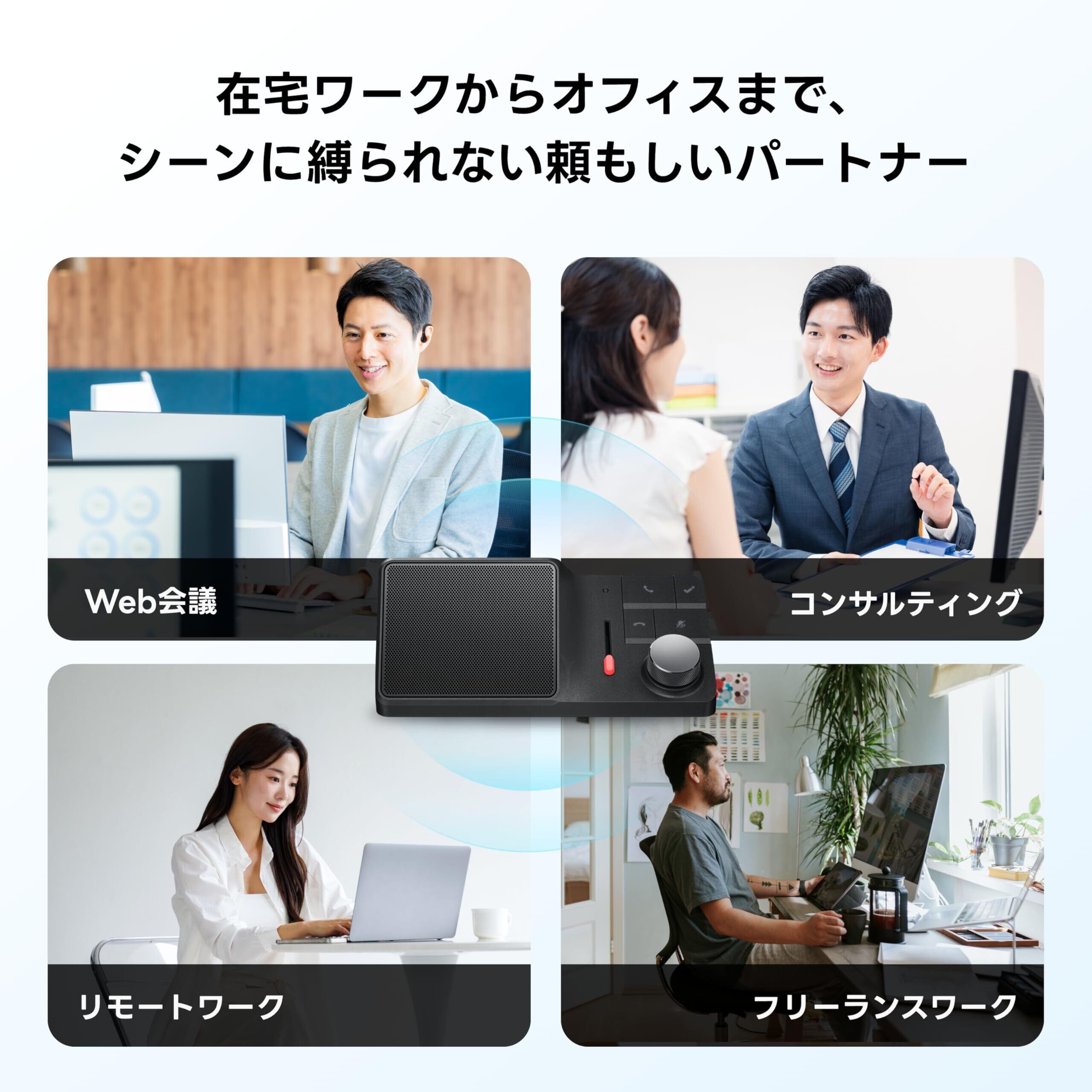 【専用ワイヤレスイヤホン付属】プライベートな通話のために専用のワイヤレスイヤホンを付属。オープンイヤーデザインを採用しており、長時間装着しても快適に使用でき、Web会議中でも自由に移動できます。
