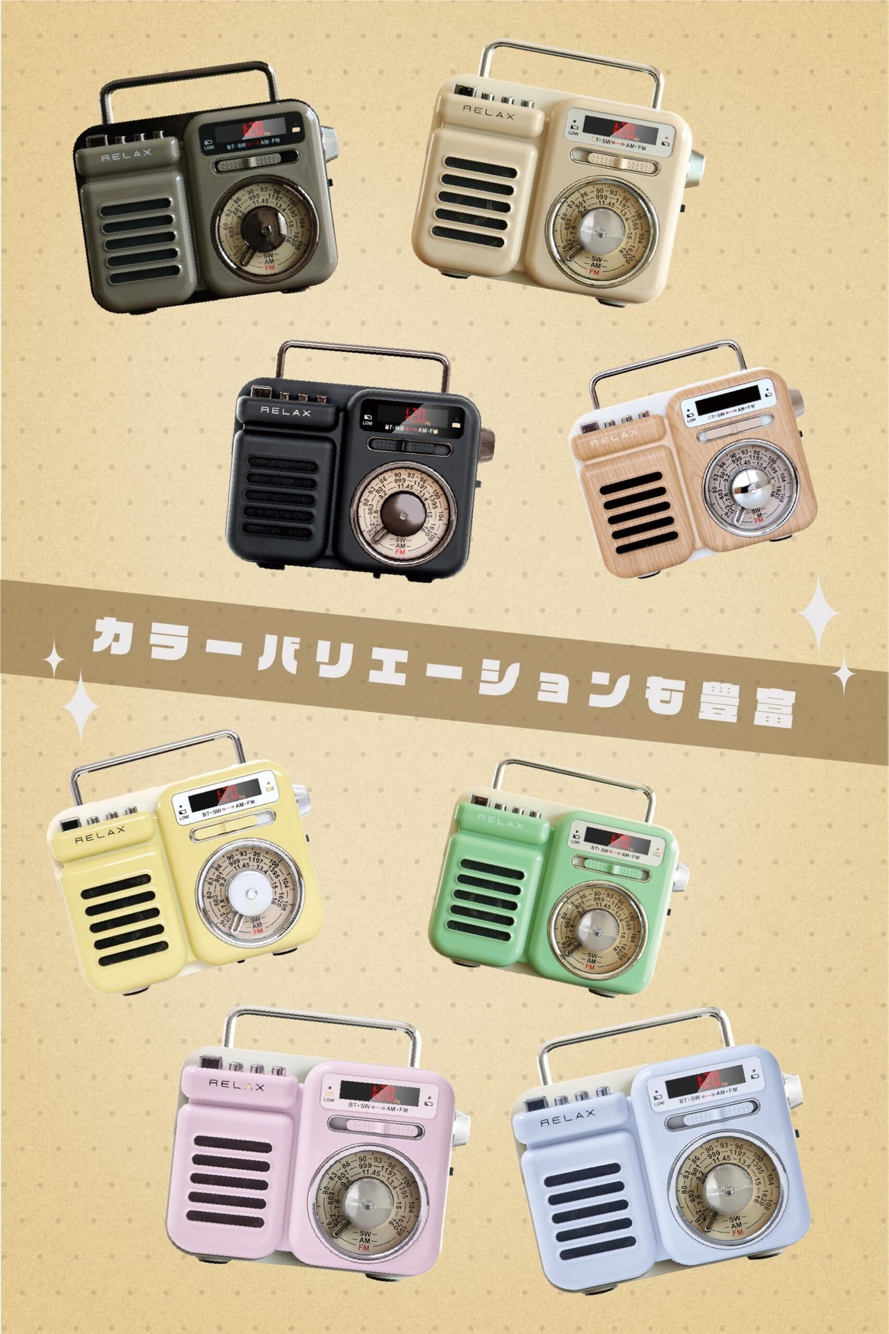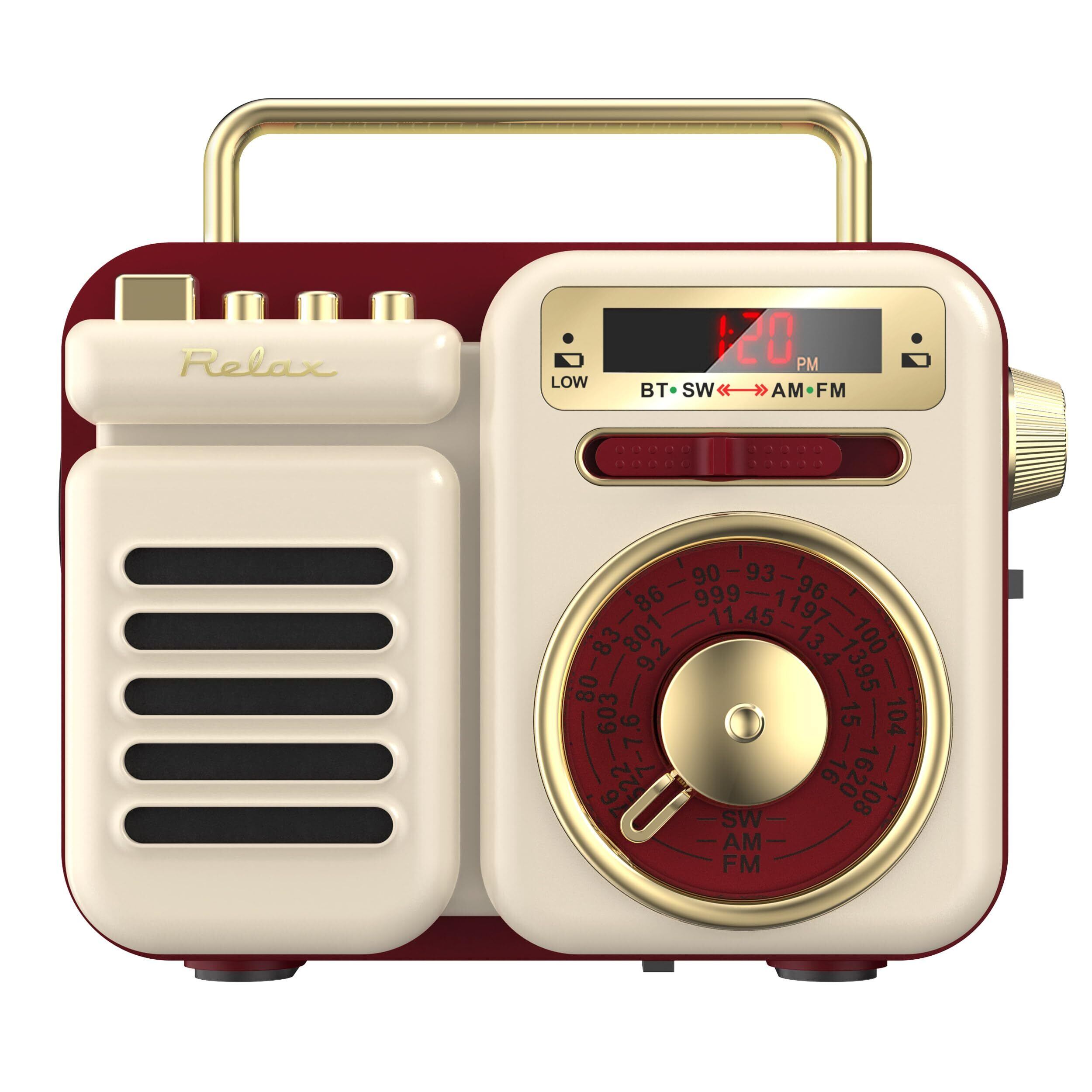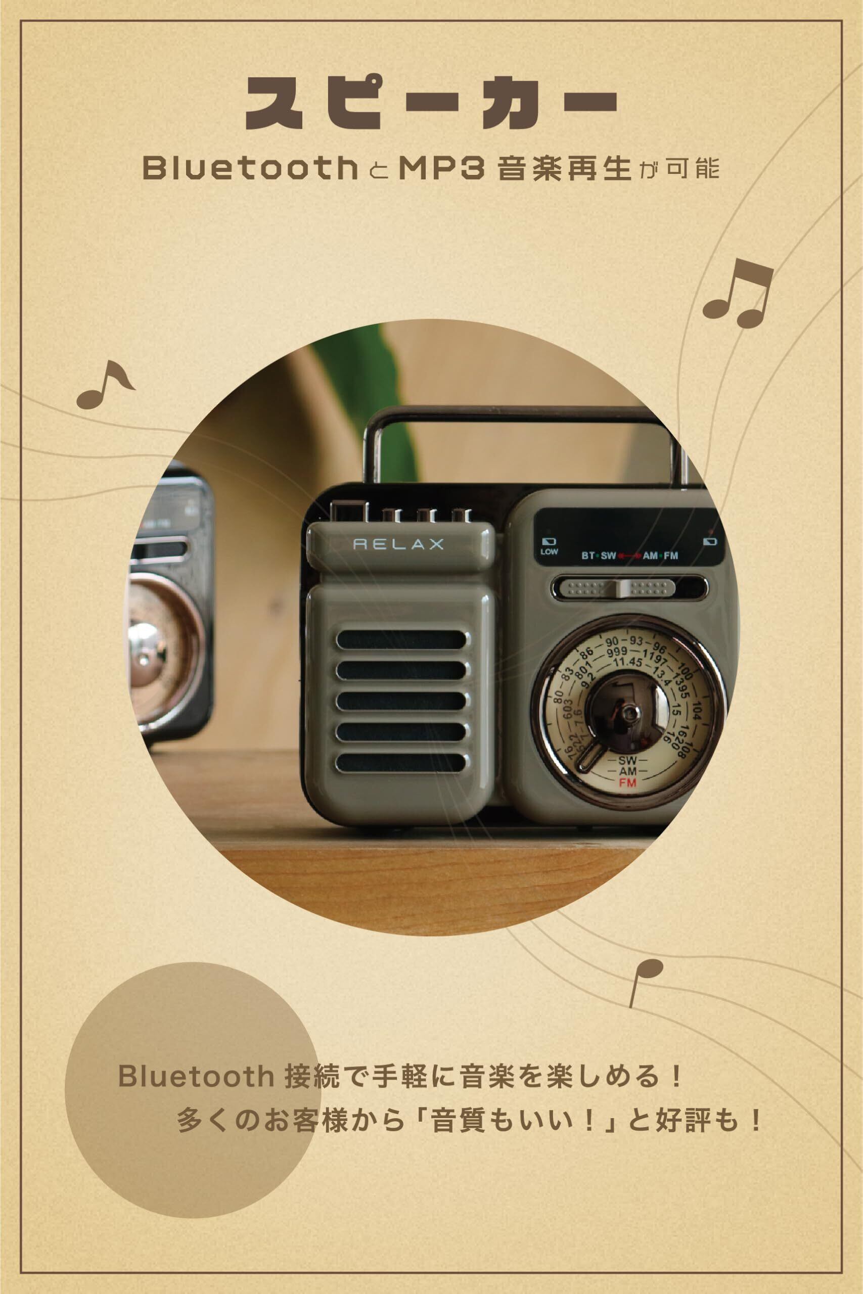 RELAX マルチ レトロラジオ スピーカー 1台7役 ポータブルラジオ Bluetooth MP3 音楽再生 LEDライト 懐中電灯 モバイルバッテリー 多機能ラジオ 充電 手回し ソーラー 発電 FM/AM/SW 受信可能 時計機能搭載 TELEC認証取得済 (1983)