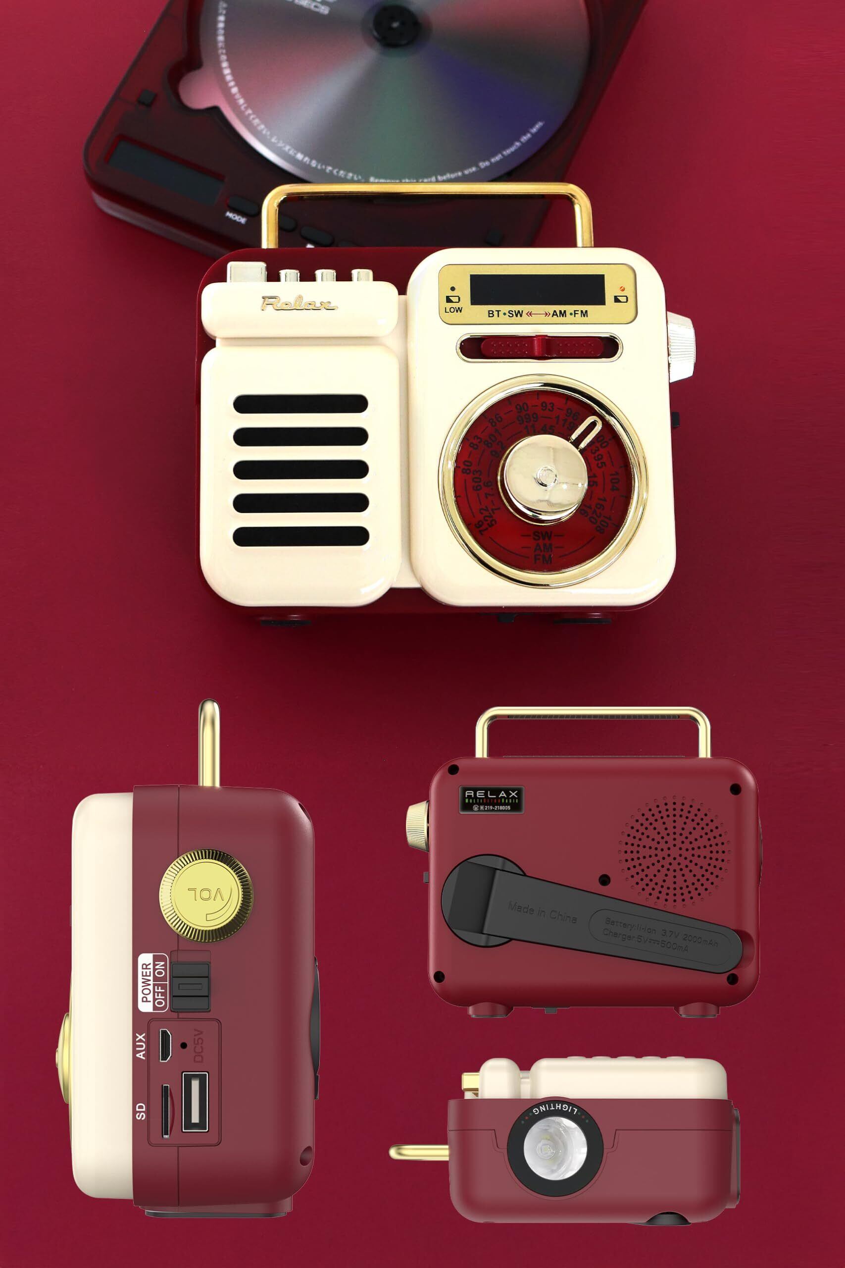 【数量限定】RELAX マルチ レトロラジオ スピーカー 1台7役 ポータブルラジオ Bluetooth MP3 音楽再生 LEDライト 懐中電灯 モバイルバッテリー 多機能ラジオ 充電 手回し ソーラー 発電 FM/AM/SW 受信可能 時計機能搭載 TELEC認証取得済 (1983) | ニコニコSHOP