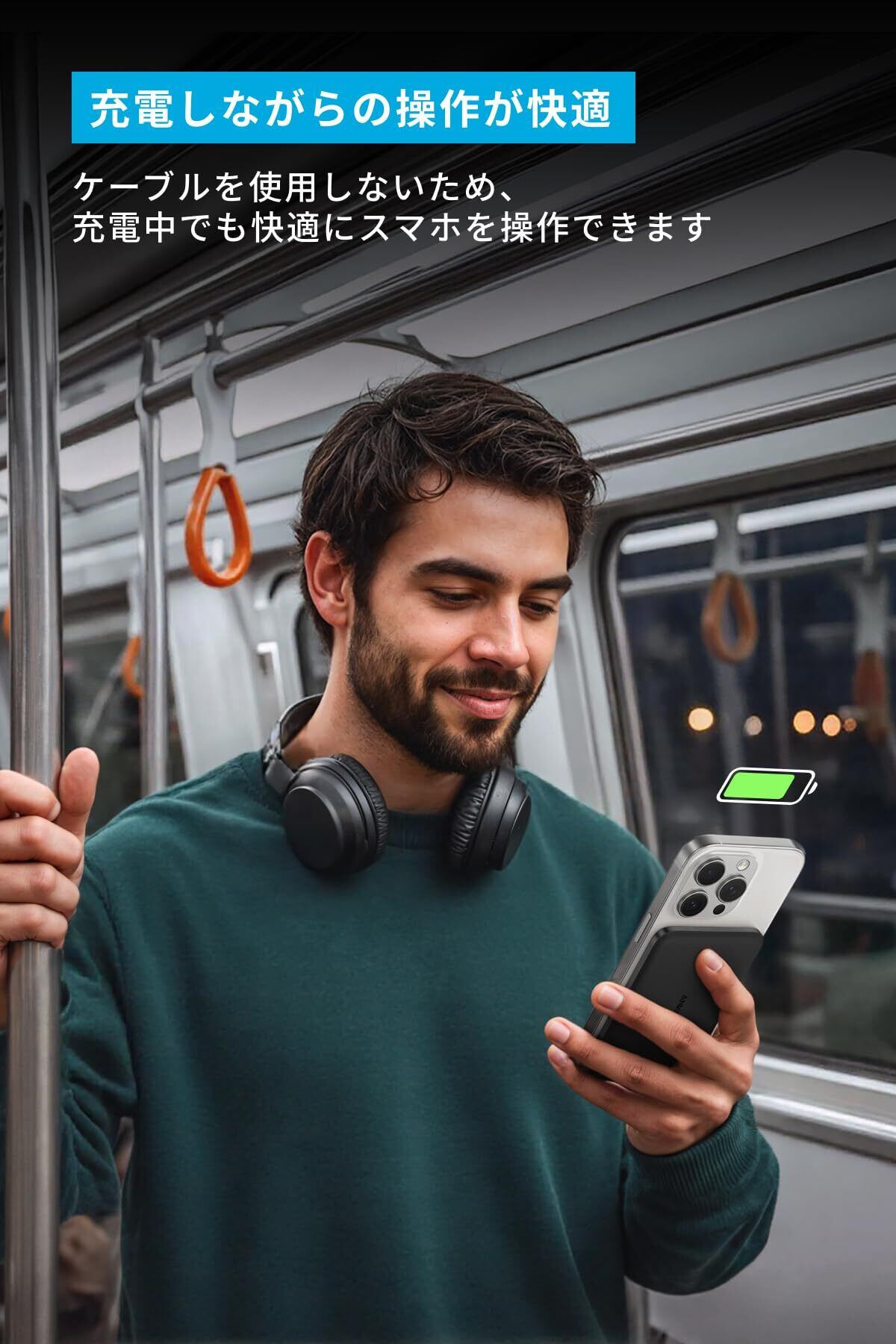 充電しながらの操作が快適:ケーブルを使用しないため、充電中でも快適にスマホを操作できます。