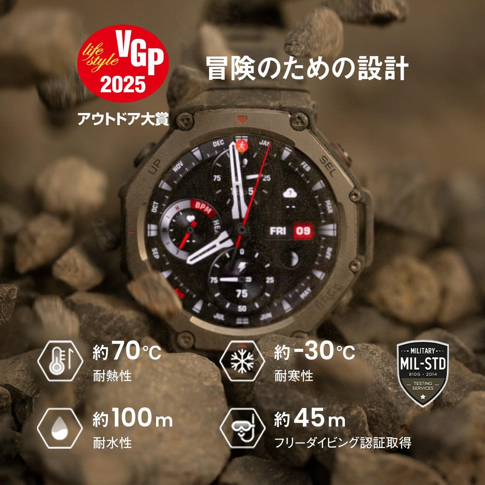 【在庫処分】Amazfit T-Rex 3 48mm スマートウォッチ 登山 ヤマレコ ヤマップ アウトドア 27日間バッテリー iPhone Android対応 GPS 6衛星 ミリタリー 超低温動作 3種類オフラインマップ ナビゲーション ルートインポート 170+スポーツモード 健康管理 気圧高度計 筋力トレーニング 10ATM防水 AIによる音声操作と睡眠/運動管理 水泳 サーフィン (ラバ) | ニコニコSHOP