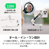 オールインワンのコンテンツ作成ツール:必要なツールが1つになったAIスマホジンバル。iPhoneやAndroid撮影用の三脚、自撮り棒、自撮りミラー、テレプロンプター、充電器、10時間のバッテリー寿命が内蔵されている。Flow 2 Proがあれば、他の機材は必要なく、1日中撮影。