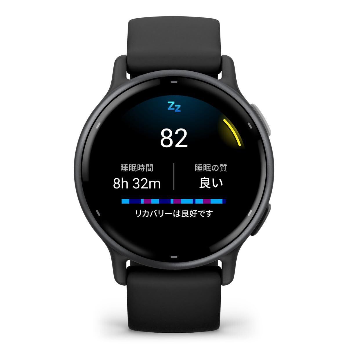【睡眠管理機能】睡眠コーチ付きの睡眠モニタリング:睡眠の質を100点満点で採点する「睡眠スコア」がわかるだけでなく、スコアを改善するために必要な睡眠時間や、睡眠を改善するあなたに合わせたアドバイスを受け取れます。
