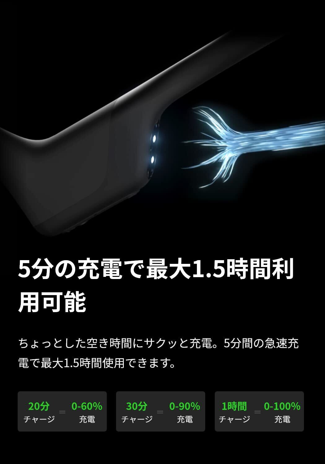 最大10時間連続再生可能:最長で10時間にわたり、余裕のあるリスニング体験をお楽しみいただけます。たったの5分間の急速充電で、約1.5時間のバッテリー駆動が可能となり、急な外出や通学通勤にも便利です。テレワークや、web会議、在宅勤務、ゲーム、運動にも対応できます。
