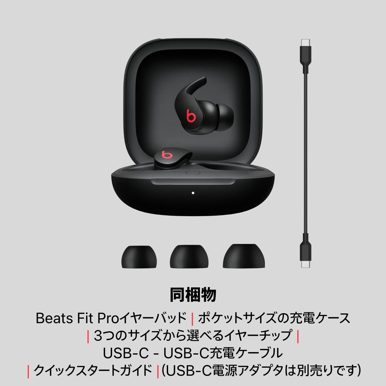 Beats Fit Pro – ワイヤレスノイズキャンセリングイヤホン – アクティブノイズキャンセリング、空間オーディオ対応、IPX4等級、耐汗仕様イヤフォン、AppleデバイスおよびAndroidデバイスに対応、Class 1 Bluetooth®、内蔵マイク、再生時間6時間 – ブラック
