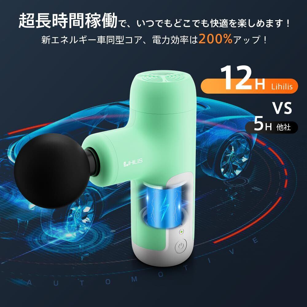 【人気商品】筋膜リリースガン【2024最新昇級 MINI】Lihilis ハンディ AI自動モード 6段階強力振動 340g超軽量 Type-C急速充電 4000mAh大容量(12時間以上連続使用) 静音 携帯便利 4個ヘッド付属 収納ケース付き 誕生日プレゼント 女性 男性 父の日 母の日 敬老の日 ギフト最適 (グリーン) | ニコニコSHOP