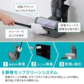 充電時間:約4時間(室温・使用時間などにより充電時間が長くなることがあります。)●付属品:充電アダプター、充電スタンド、静電モップ、モップ帯電ケース、すき間ノズル、クリーニングブラシ