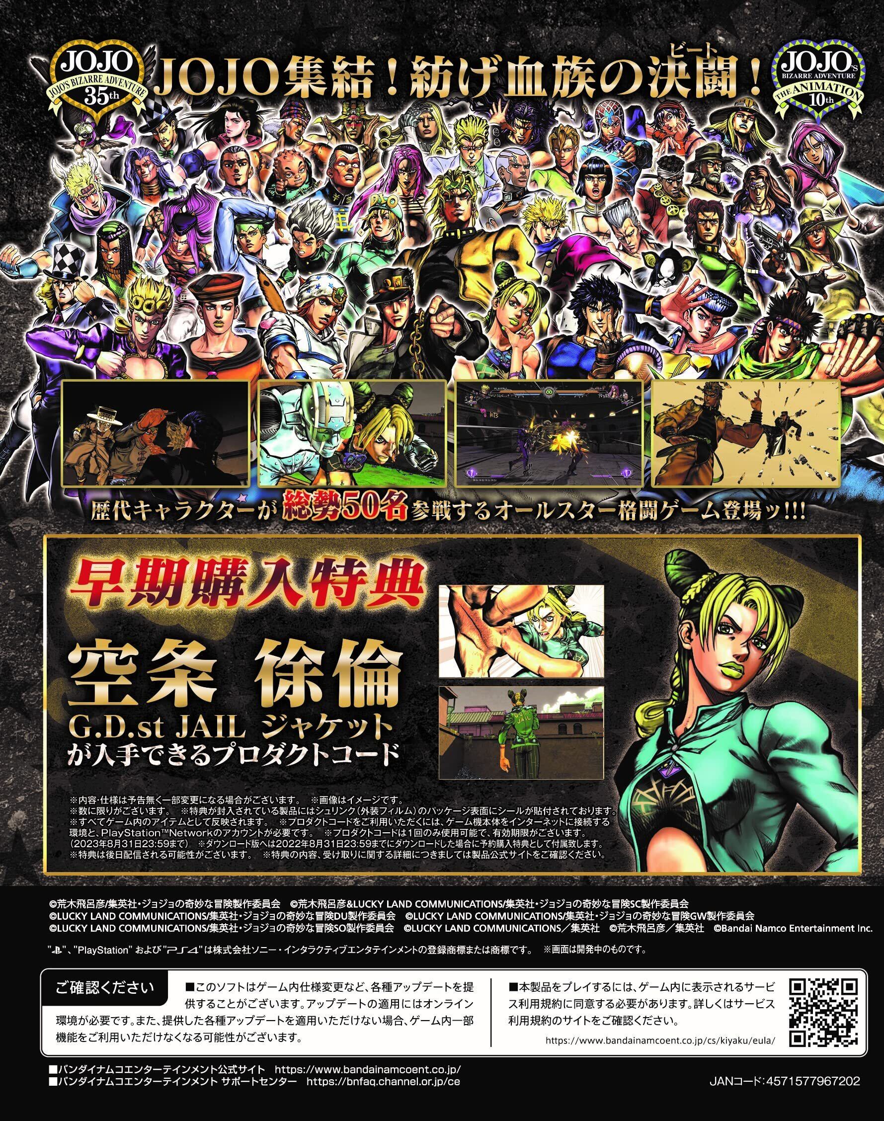 『ジョジョの奇妙な冒険 オールスターバトルR』とは荒木飛呂彦先生が描く独特の表現を再現した超ジョジョ表現の格闘ゲーム!「ジョジョの奇妙な冒険」に登場する歴代キャラクターが総勢50名集結!スタンド、波紋、流法など、各部で活躍した力がぶつかりあう!本作ならではの夢の競演、原作では出会うことのないキャラクターたちが交わす掛け合いは必見!格闘ゲームが苦手な方でもワンボタンコンボ機能で手軽にコンボと必殺技をお楽しみいただけます。■荒木飛呂彦が描く独特の表現を再現荒木飛呂彦らしさを追求したグラフィック表現が提供するジョジョ体験!■総勢50名を超えるプレイアブルキャラクターが参戦!ジョジョの奇妙な冒険の歴代キャラクターが総勢50名参戦!自分の好きなキャラクターを使って熱い決闘(ビート)を繰り広げよう!■部を超えた夢の共演!原作では交わることのなかったキャラクターたちの夢の対戦がここに実現!キャラクターの組み合わせ次第ではオリジナル掛け合いが楽しめる!■簡単コンボ機能で格闘ゲームが苦手な方も安心!誰でも簡単にコンボをつなげ必殺技演出が楽しめるイージービートを実装!格闘ゲームが得意でない方も気軽に熱いバトルをお楽しみいただけます。