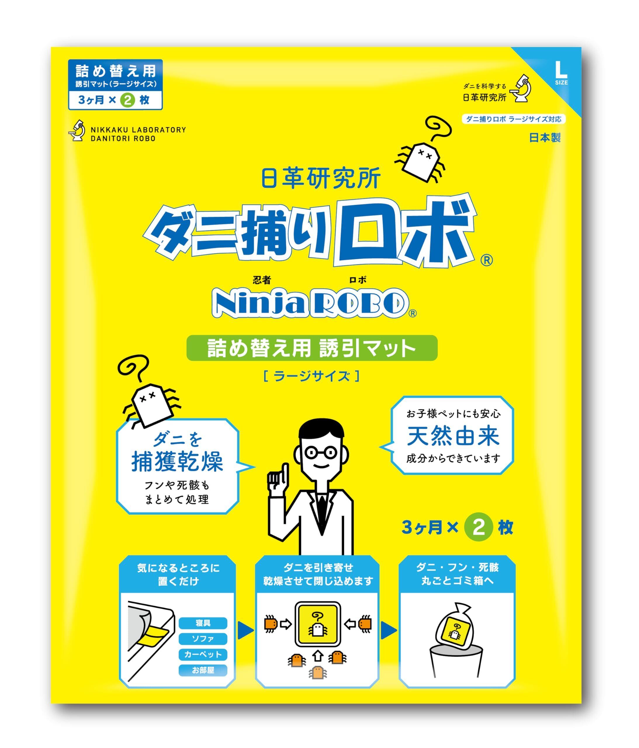 【日革研究所】ダニ捕りロボ 詰め替え 誘引マット ( ラージ 2枚 ) 日本製 乾燥 ( ダニ取りシート / 3か月有効 / 殺虫剤成分ゼロ ) 赤ちゃん ペットにも安心