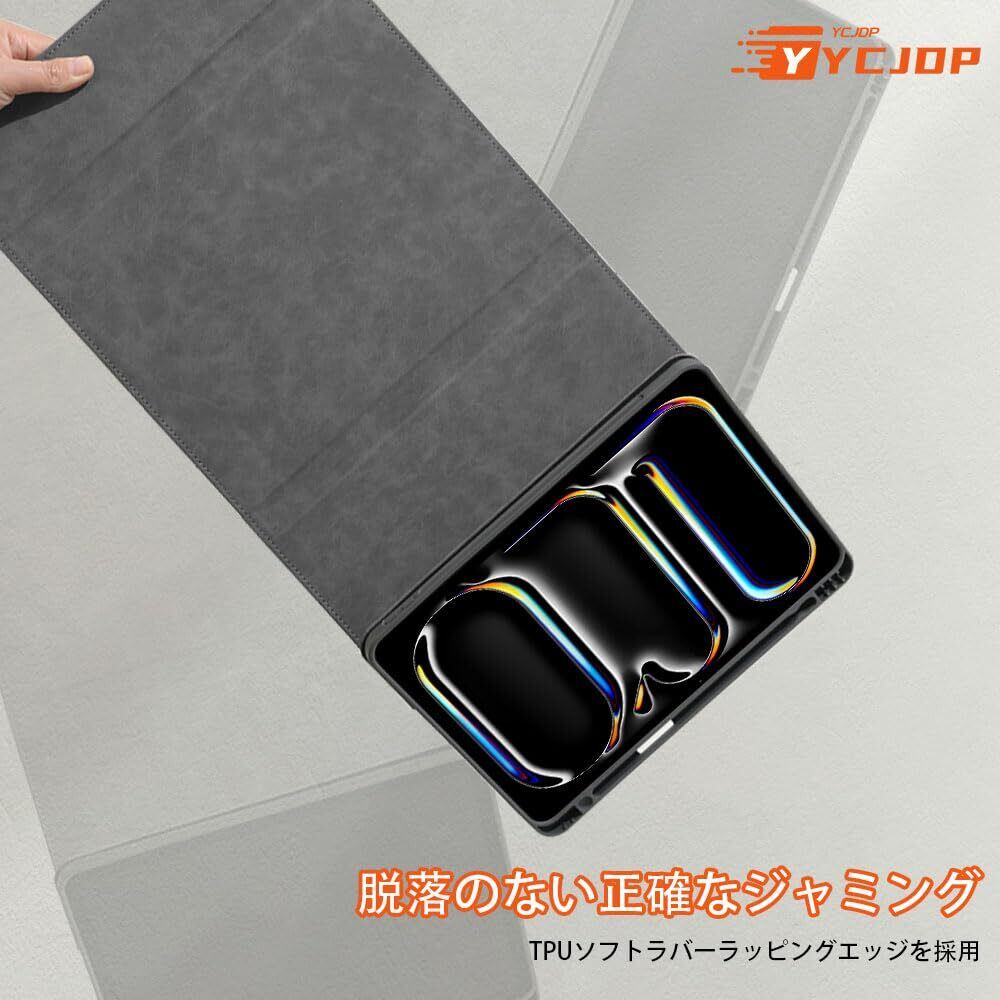 【2024発売-YCJDP】For iPad Pro 13インチ 2024 第7世代 専用 ケース 磁気吸引/スリープ機能付き/ペンノッチ付き/スタンド機能 多視角調整 Pencil Pro/USB-C完全対応 360°全面保護 衝撃吸収 擦り傷防止 耐汚れ 落下を防ぎます アイパッド プロ 13 タブレットカバー(グレー)