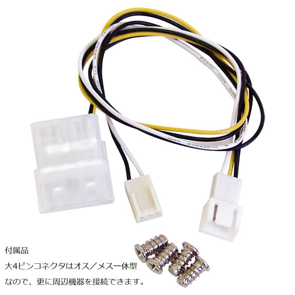 付属品: 3ピン→ペリフェラル電源 (大4ピン) 変換ケーブル (パルスセンサー検出タイプ)、 固定用ネジ×4個、RoHS指令準拠 (10物質)