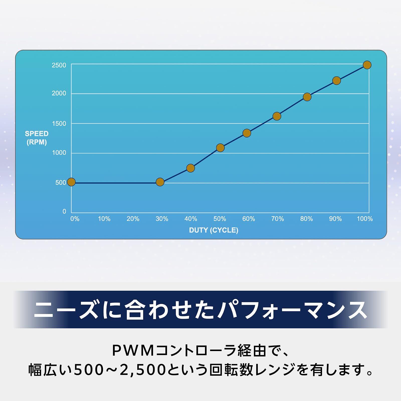 【高い回転数】PWM経由で500~2500 rpmを実現
