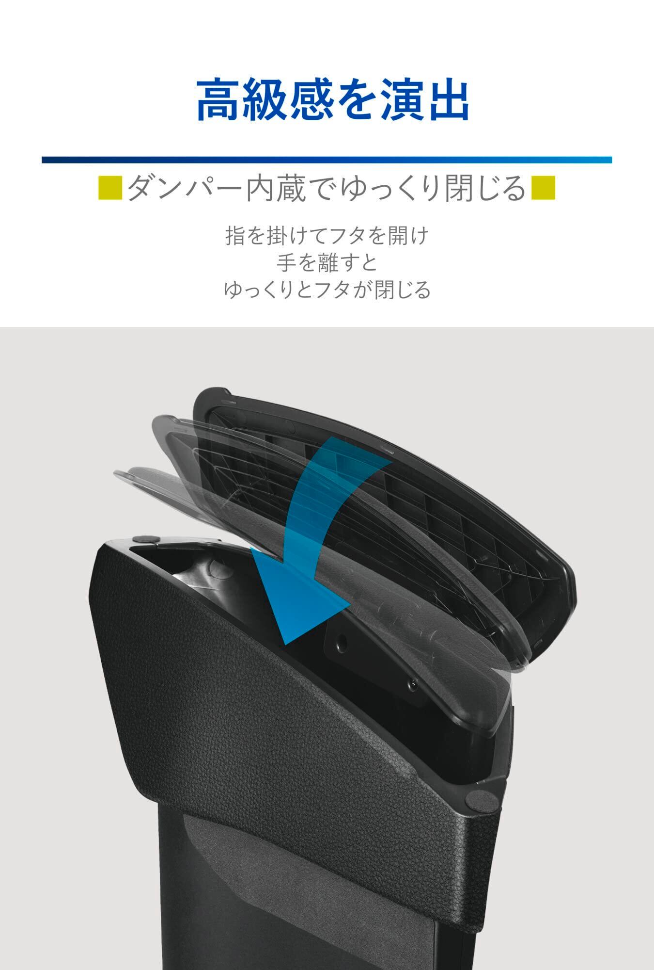 指を掛けてフタを開け、ゴミを捨てます。本体にダンパーを内蔵しているため、手を離すと自動でゆっくりとフタが閉まります。